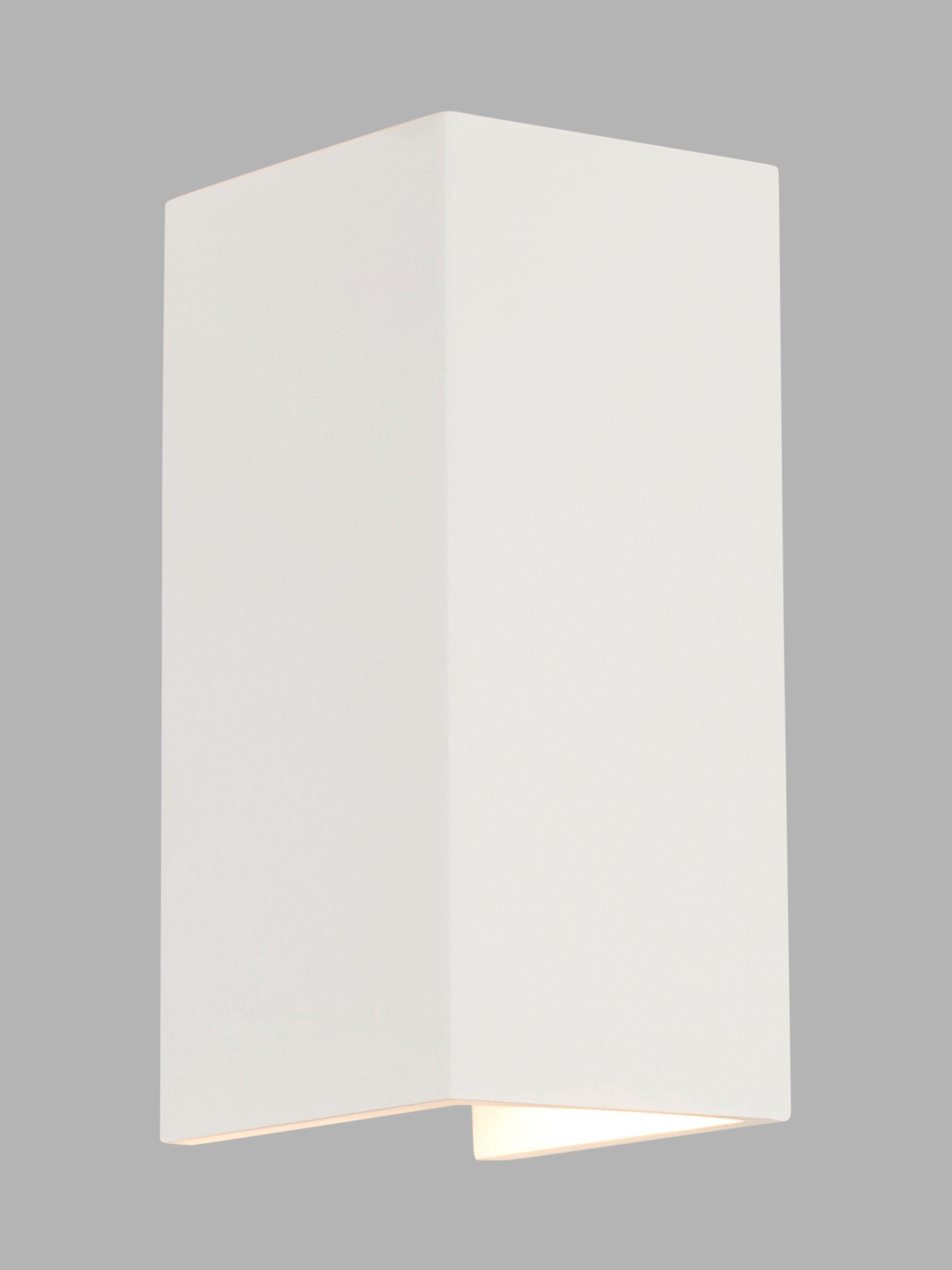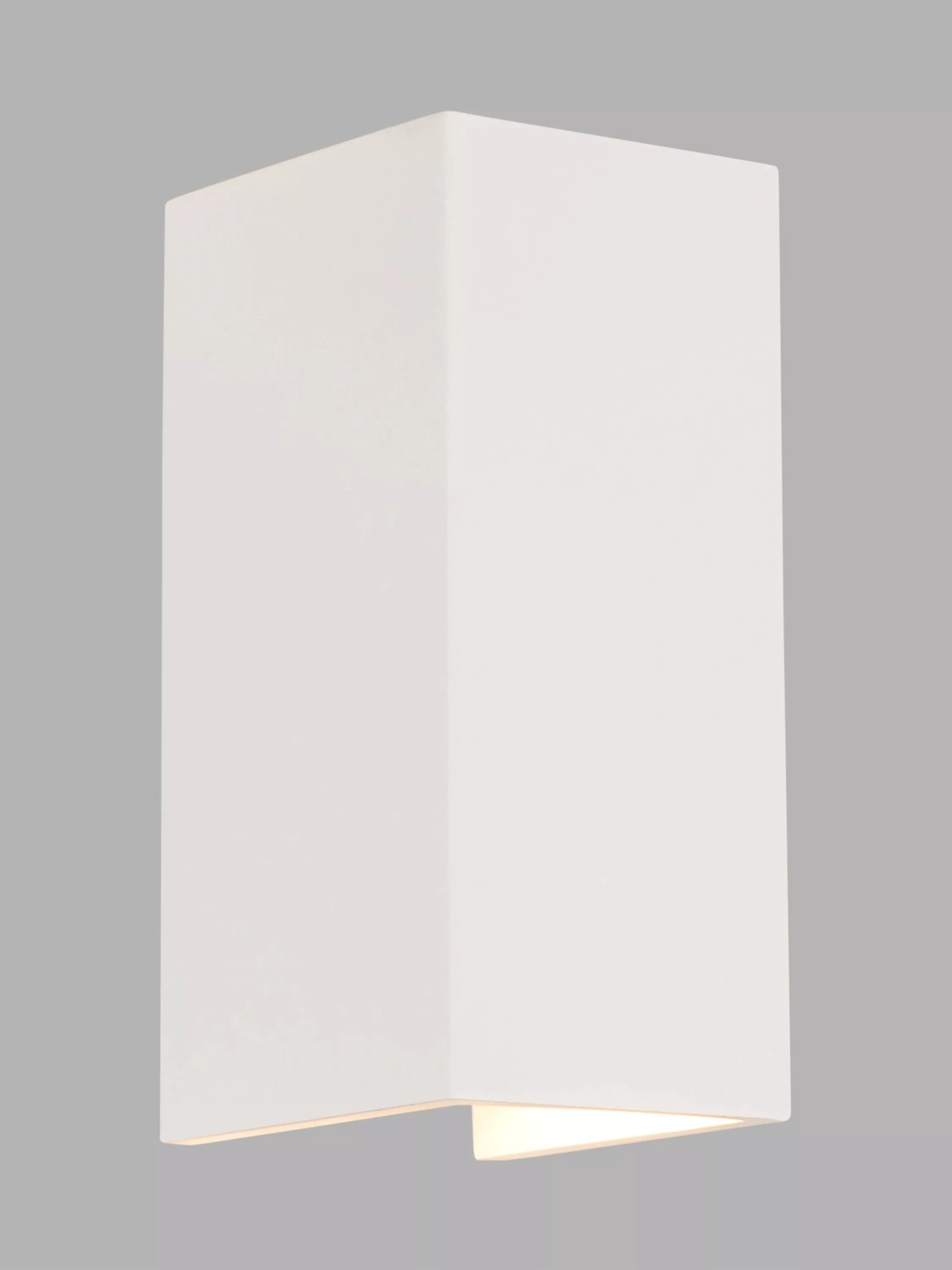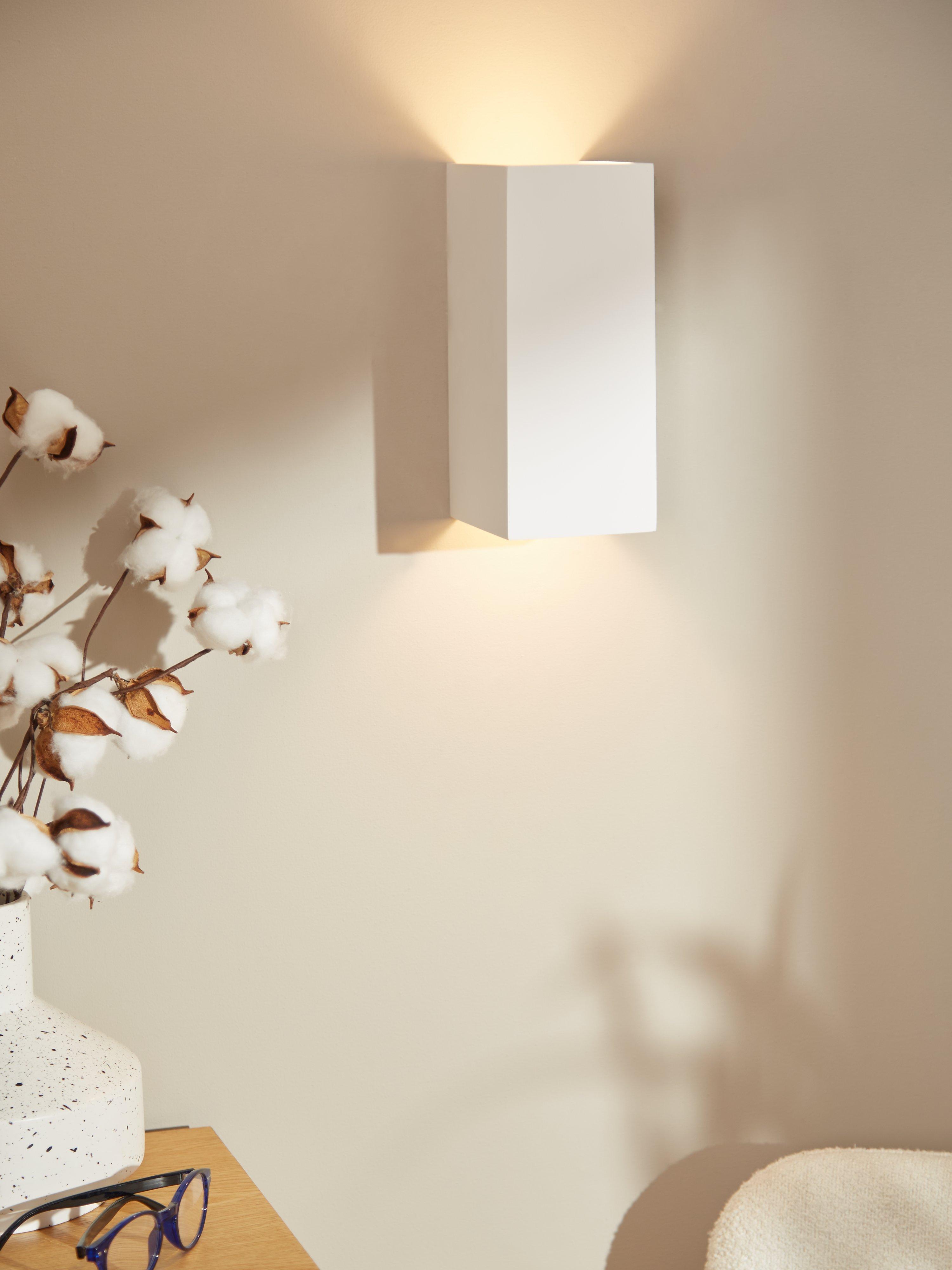 A sleek and minimal presence when switched off, this rectangular wall light comes into its own when illuminated, casting dramatic shadows upwards and downwards that echo its architectural simplicity. Made from smooth plaster, it can be left bare or painted to match any colour scheme.