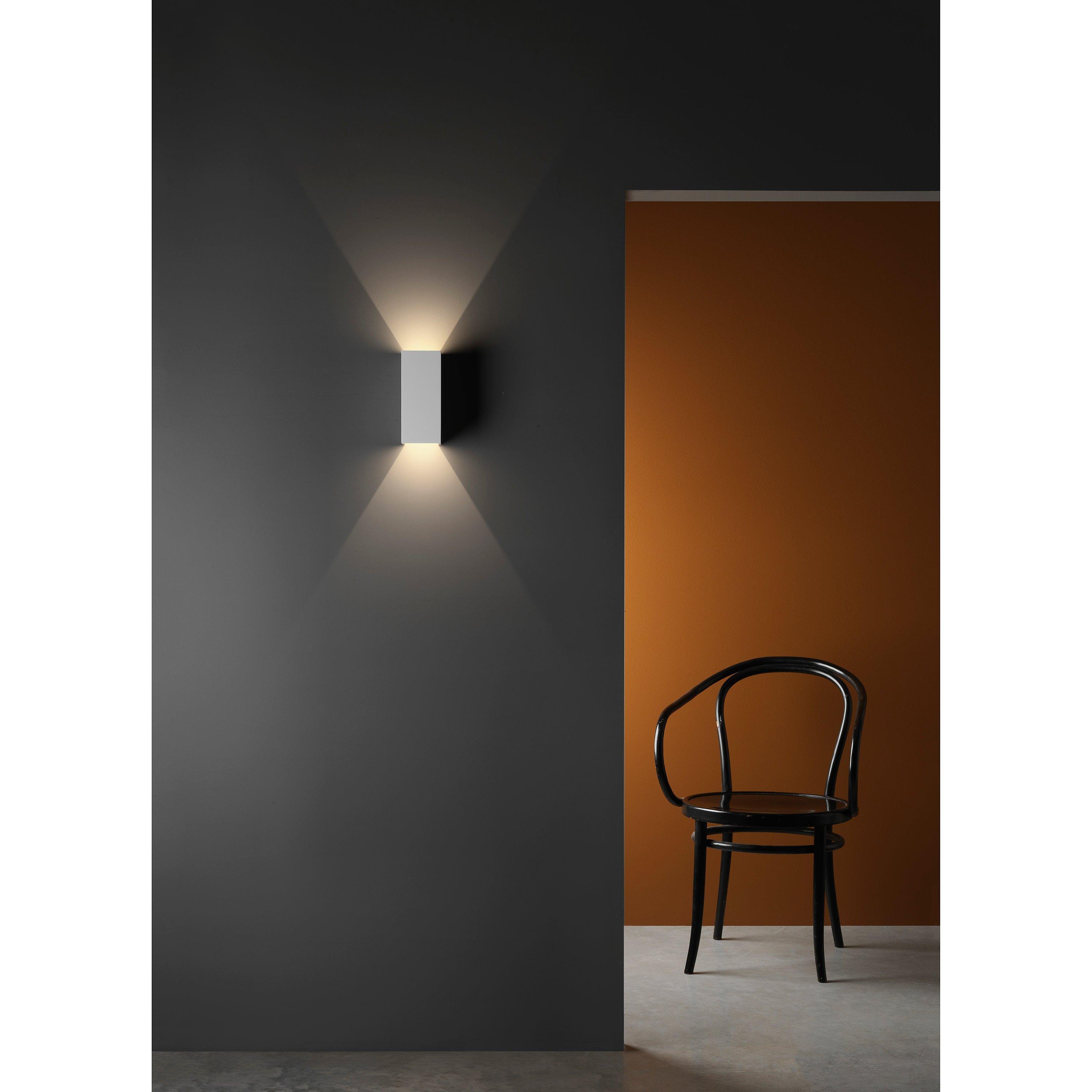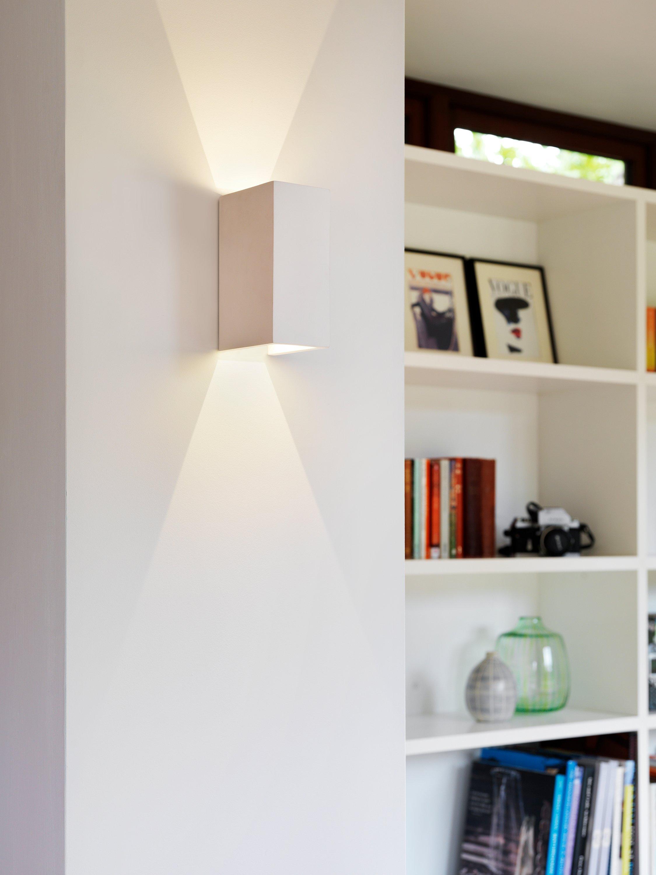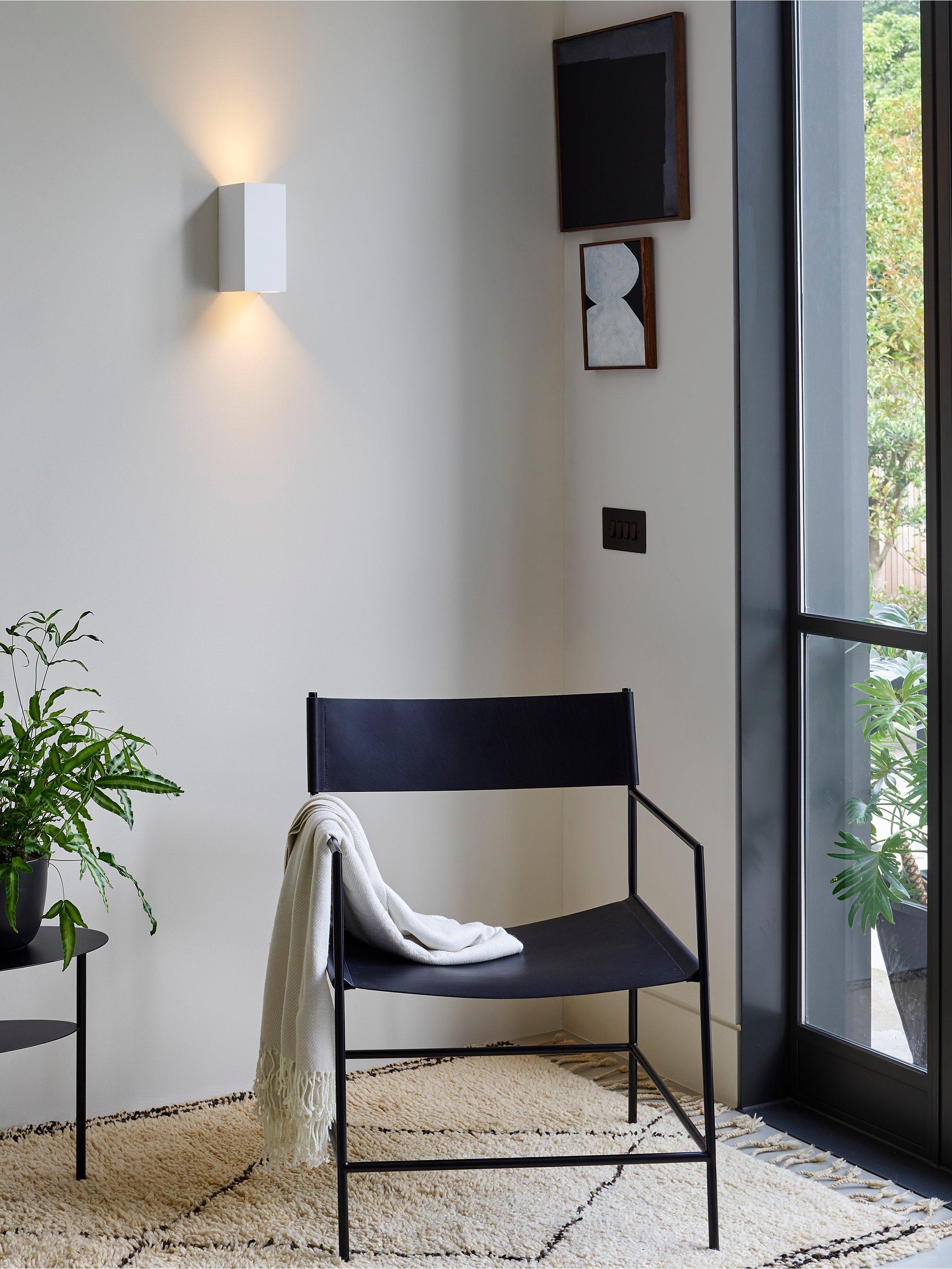 A sleek and minimal presence when switched off, this rectangular wall light comes into its own when illuminated, casting dramatic shadows upwards and downwards that echo its architectural simplicity. Made from smooth plaster, it can be left bare or painted to match any colour scheme.