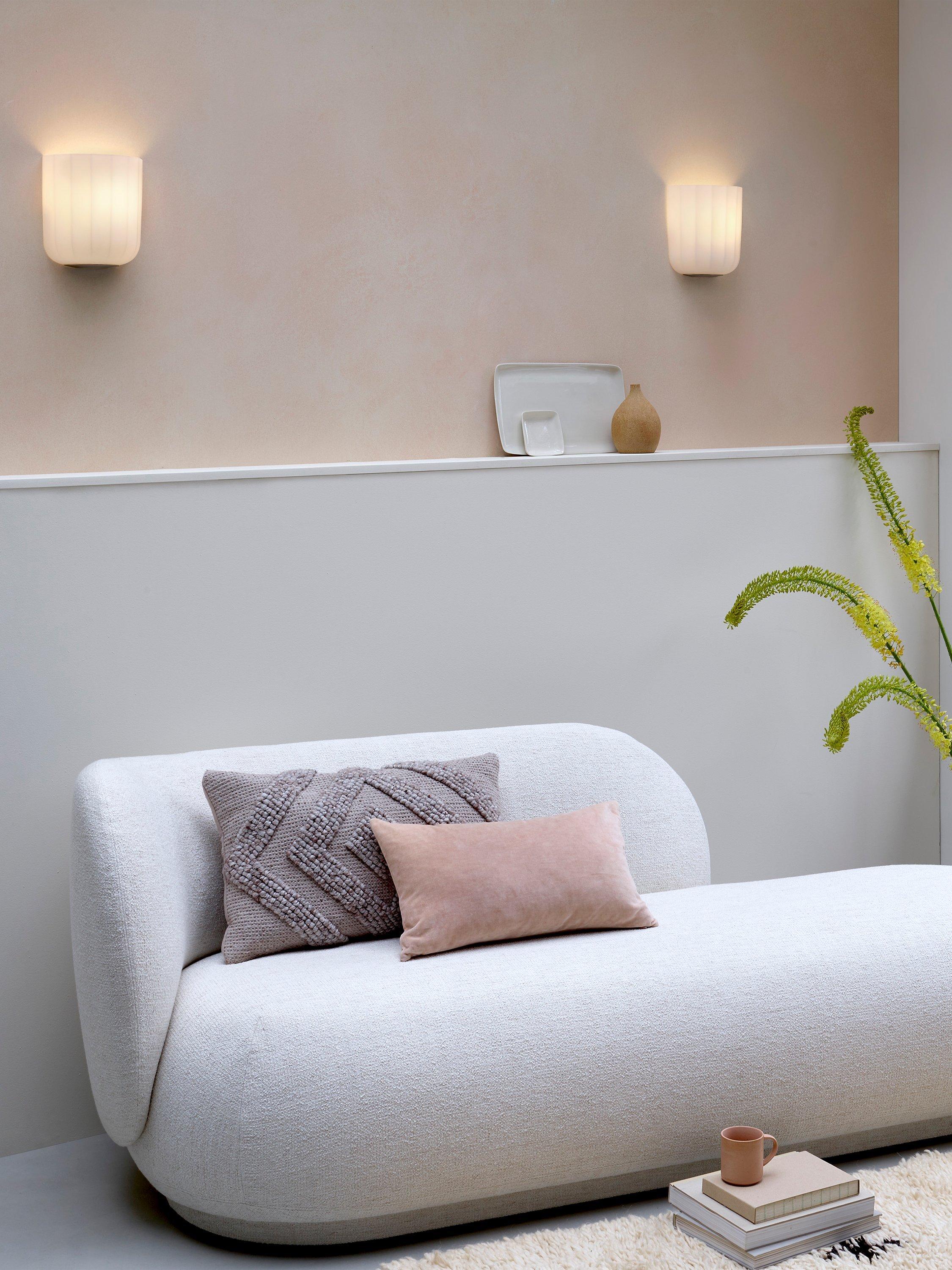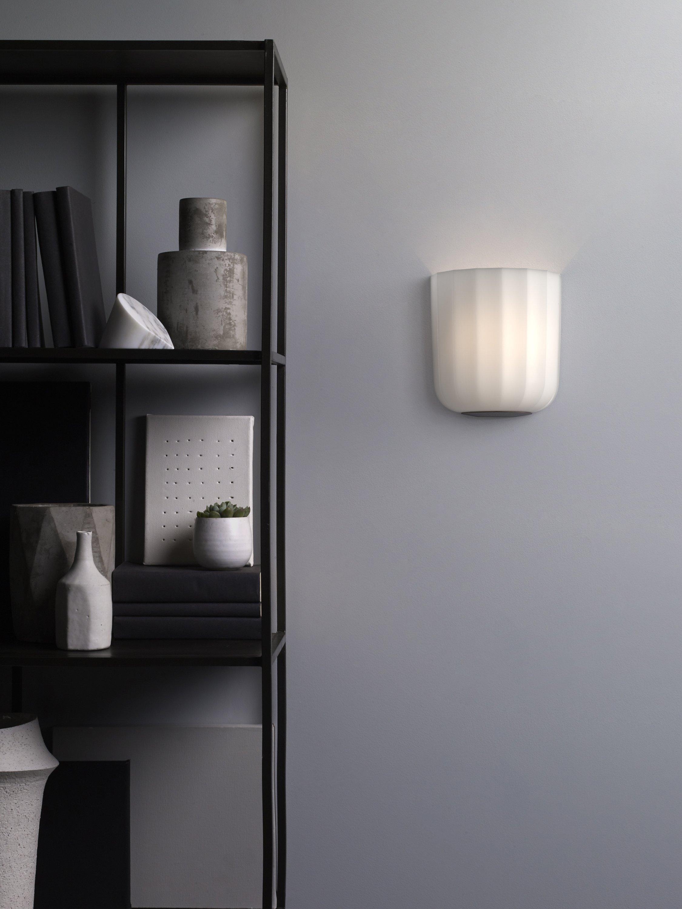 Designed with living spaces and hallways in mind, this blown-glass wall light has a sculptural feel, with its semi-circular silhouette and fluted bands. It features a subtle metal fixture at the base, to coordinate with a range of colour schemes.