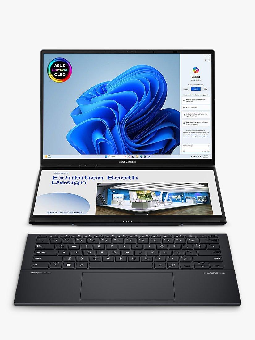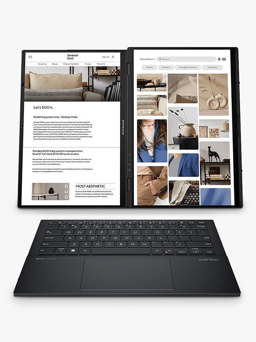 ASUSZenbook Duo Dual Screen Laptop, Intel Core Ultra 9 Processor, 32GB RAM, 2TB SSD, 14” OLED 3K Touchscreen, Arctic Grey