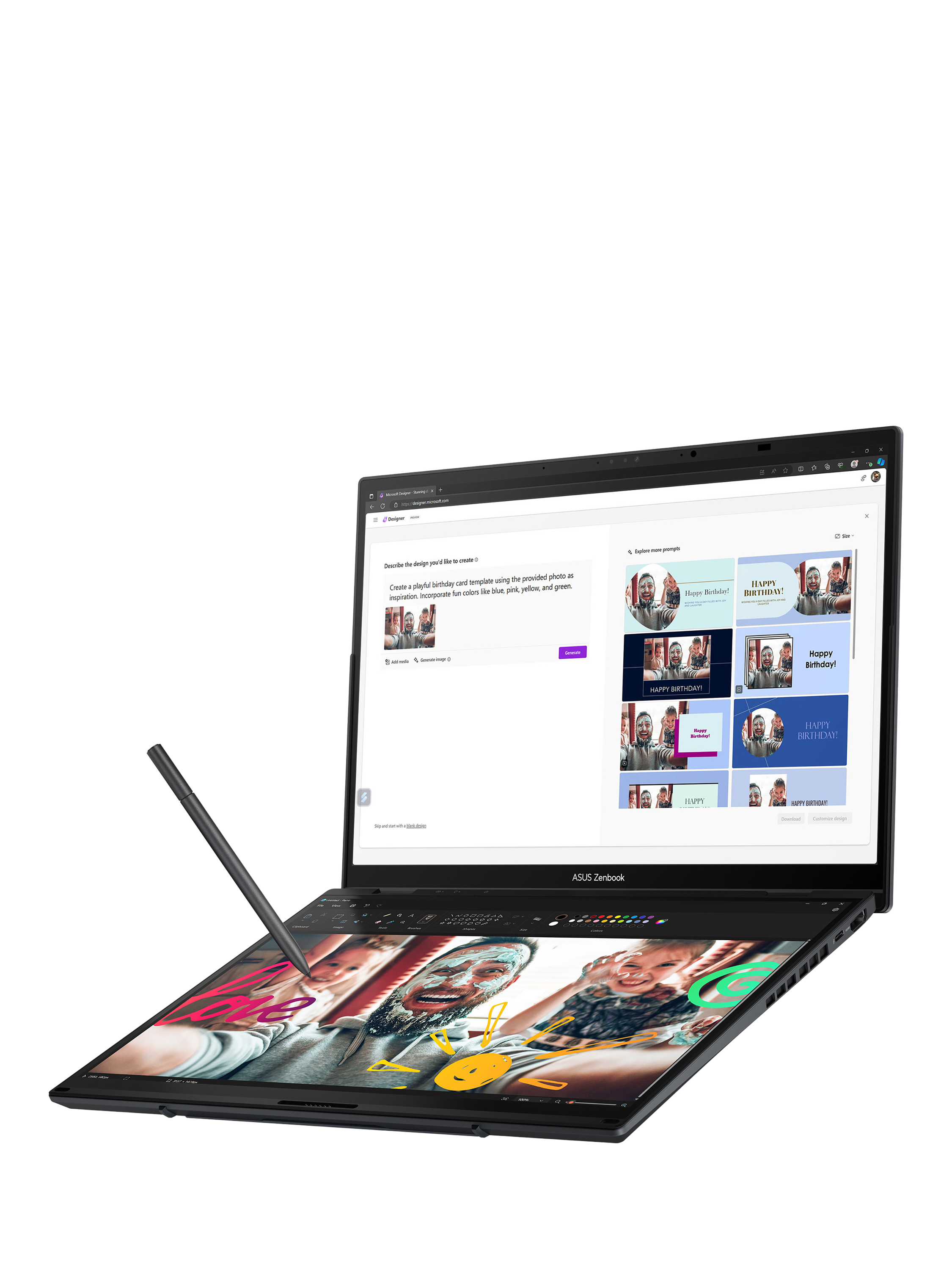 Two 14-inch ASUS Lumina OLED touchscreens provide up to 19.8 inches of workspace, all in one incredibly versatile, easily portable device. With 16:10 aspect and 3K (2880 x 1800) resolution, they enlarge your outlook, with up to 400 nits brightness, and 91% screen-to-body ratio.
