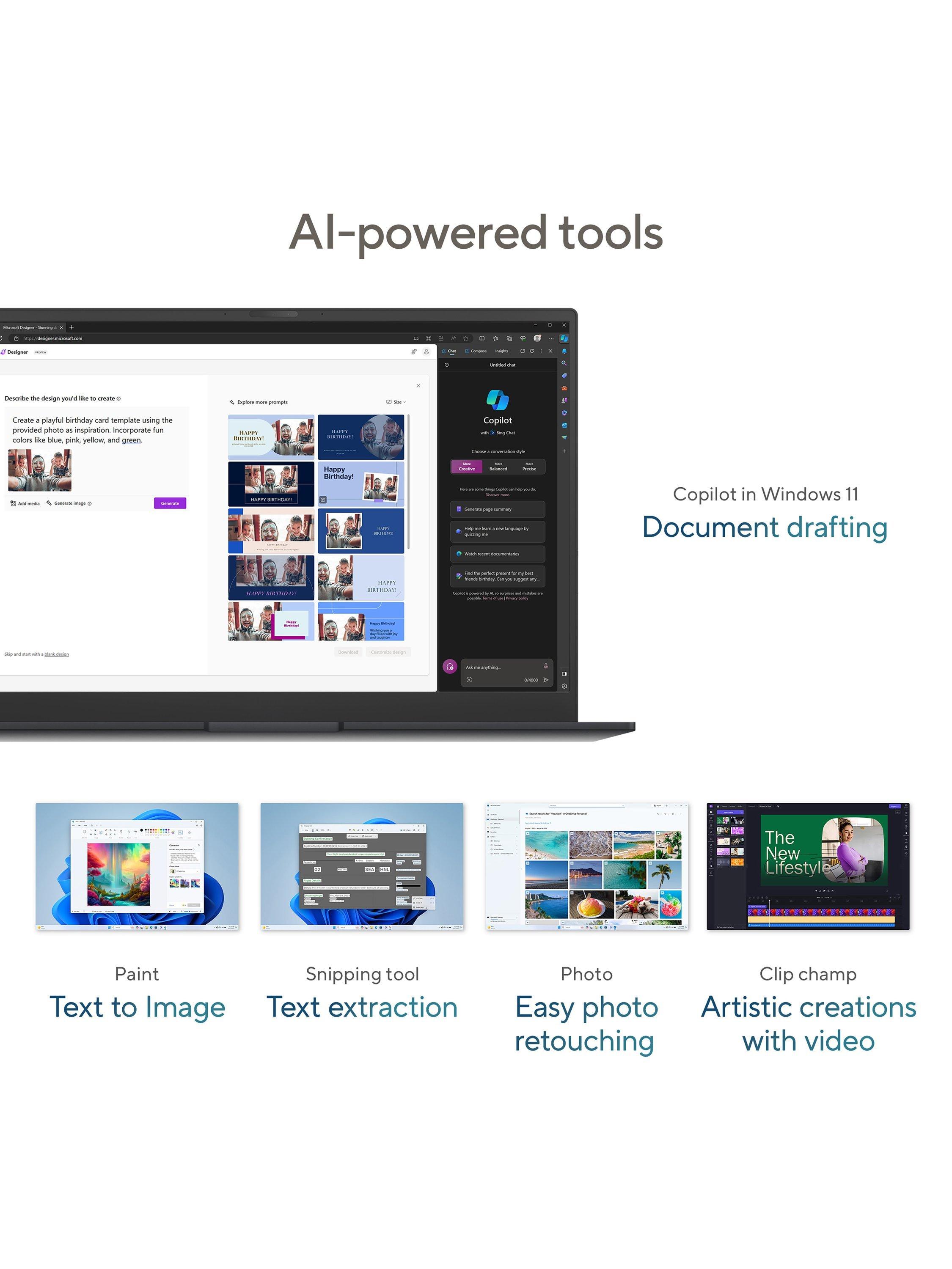 The Intel Arc graphics chip in this device brings captivating visuals and supercharged graphics to enhance the gaming experience, to assist with content creation, and to boost the performance of AI and media processing workloads.