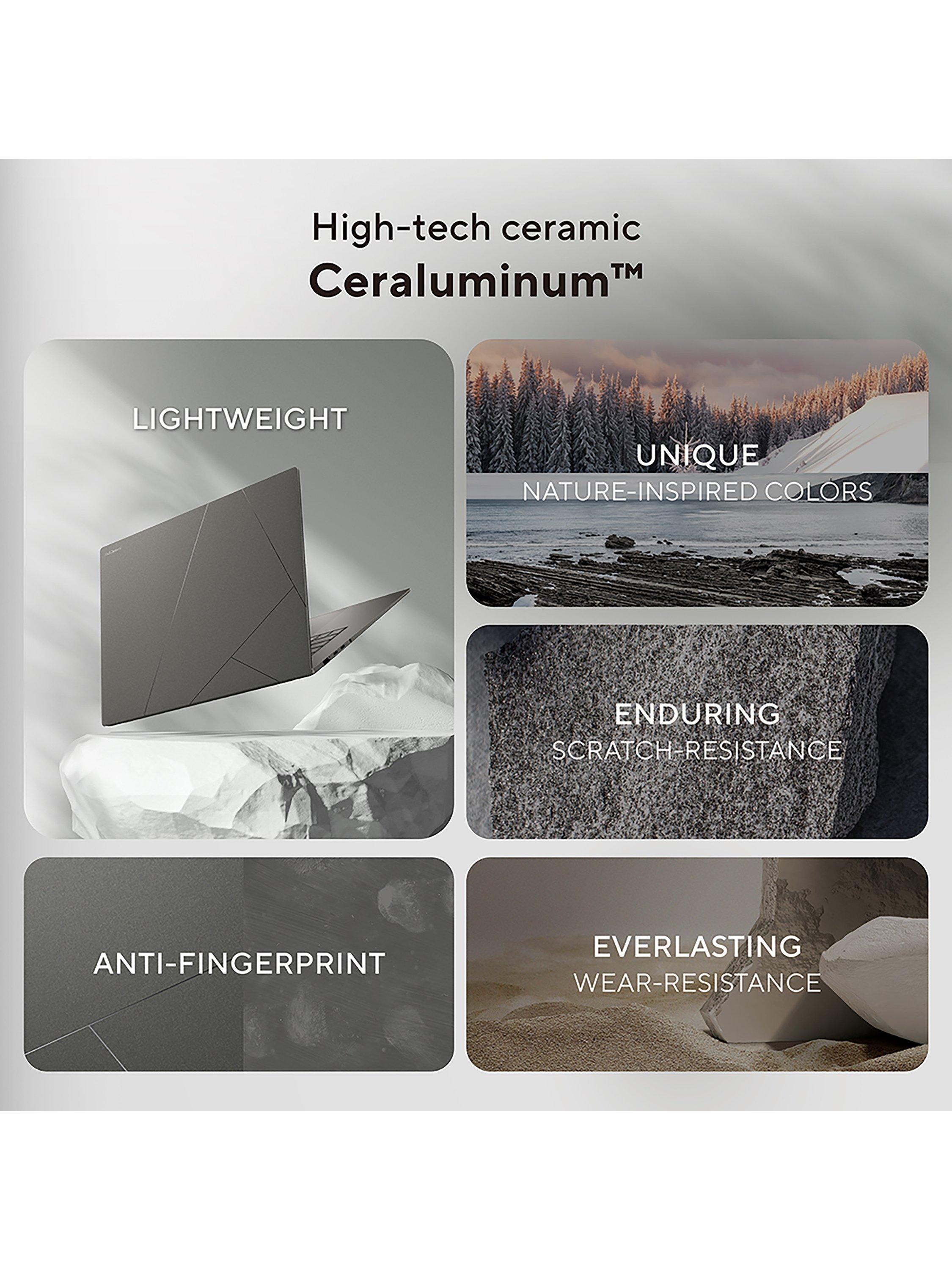 The ZenBook S 14 (UX5406) offers supreme mobility in a sleek design. With a stunning 14” 3K resolution OLED touch display, it’s ultra-thin, and beautifully light. Crafted with ASUS’ durable Ceraluminium finish, it’s as stylish as it is robust. Powered by advanced AI with a Lunar Lake processor, it delivers top-tier performance, with quiet cooling to match. The dedicated Copilot key gives you instant access to enhanced AI features. And with smart privacy, long-lasting battery and immersive audio to boot, the ZenBook S 14 is an ideal blend of style, power and portability.