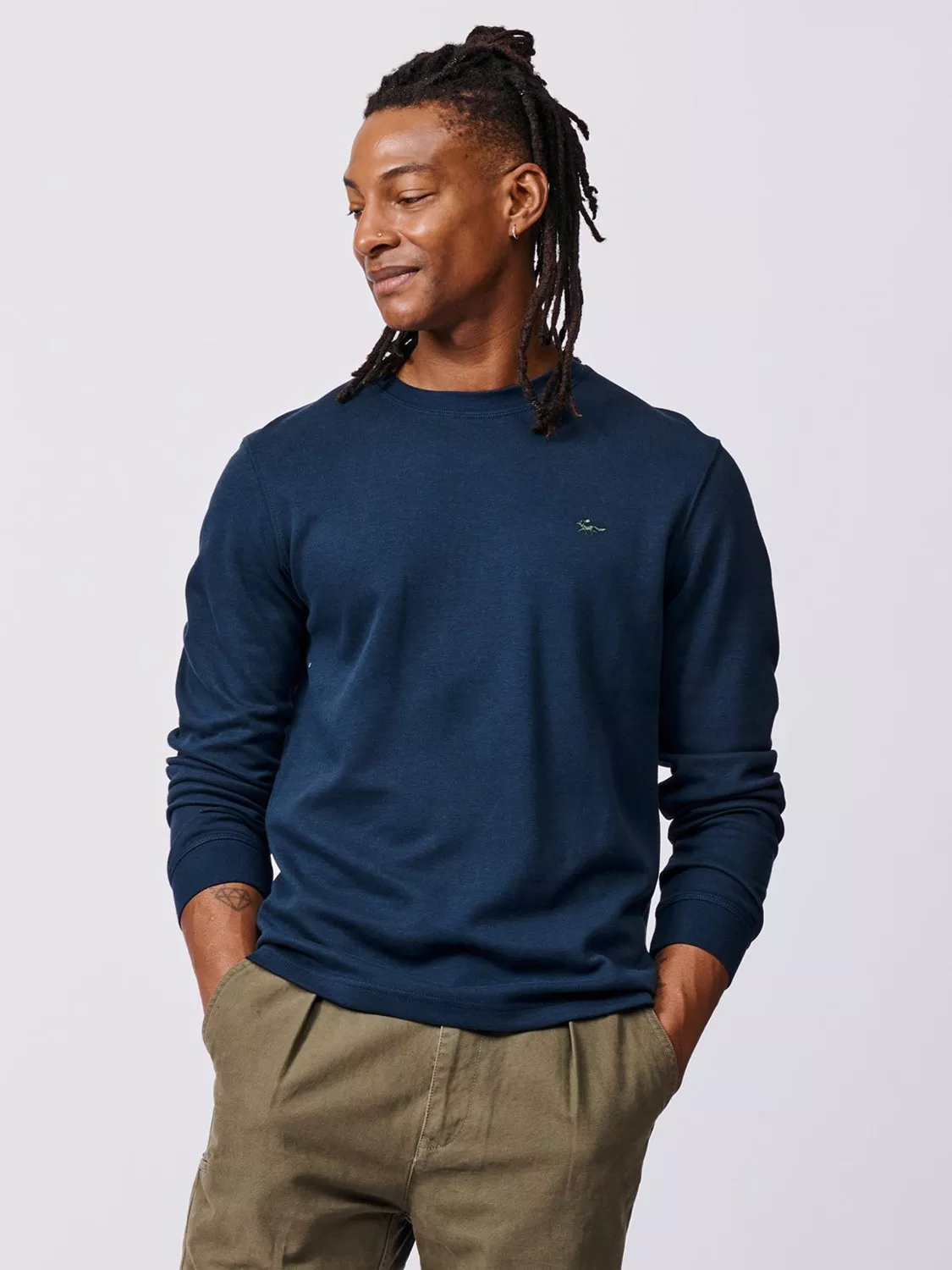 The Anderson is made from a knitted interlock fabric, meaning the fabric is the same texture on the front and the reverse, which produces something super soft and incredibly warm. The fabric does all the talking, so Aubin have kept the design simple, with long sleeves, a classic crew neck and branded Fox embroidery on the chest.