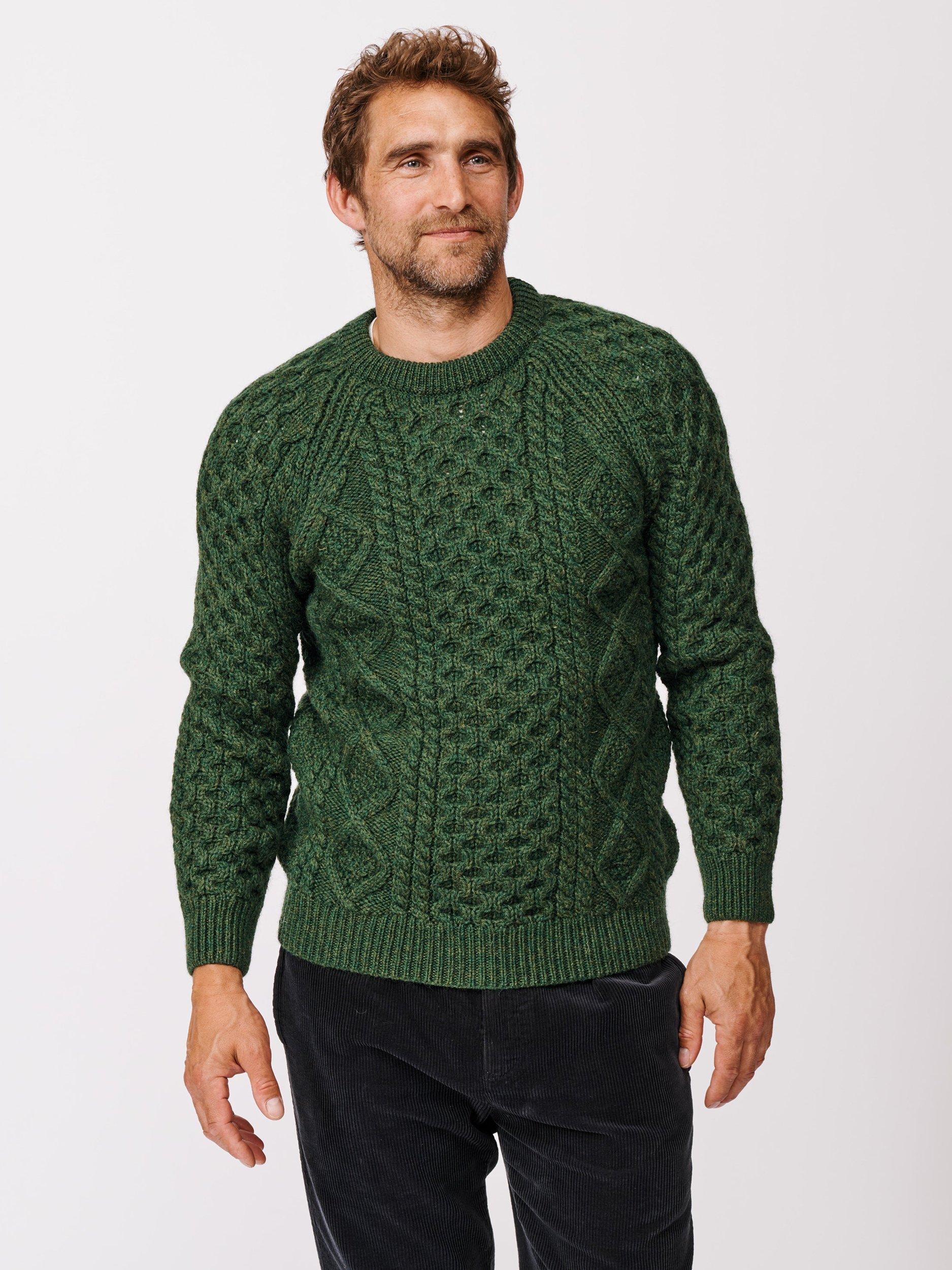 Inspired by the iconic Steve McQueen Aran, he wore it with a baseball cap and a big cigar, but we'll leave the styling to you. The Aran is knitted in the UK using high-quality British wool with a new softer hand feel.