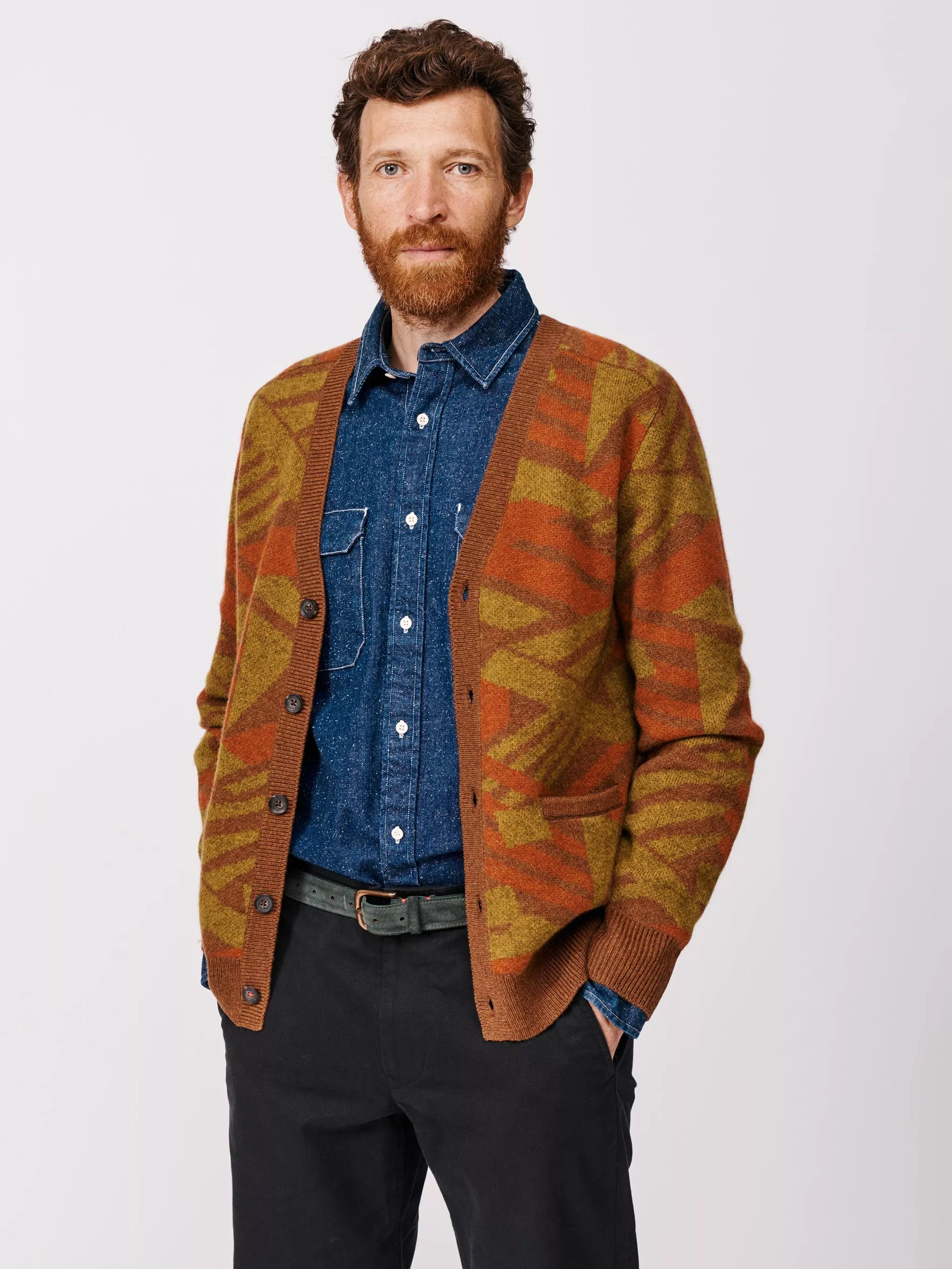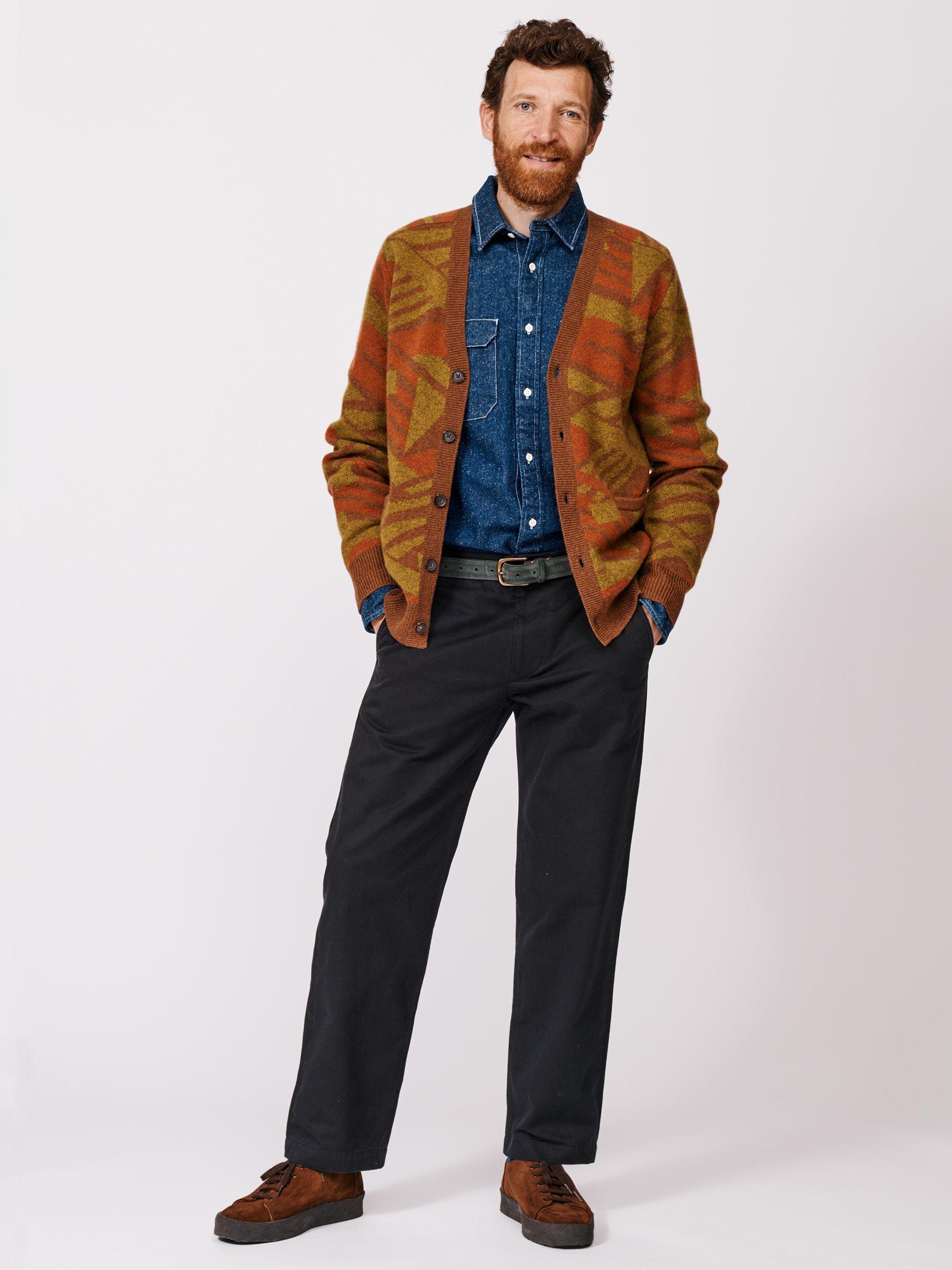 A cardigan from Aubin. The geometric pattern adds sharp style while soft wool and cashmere blend keeps you warm and comfortable. Designed for easy layering.