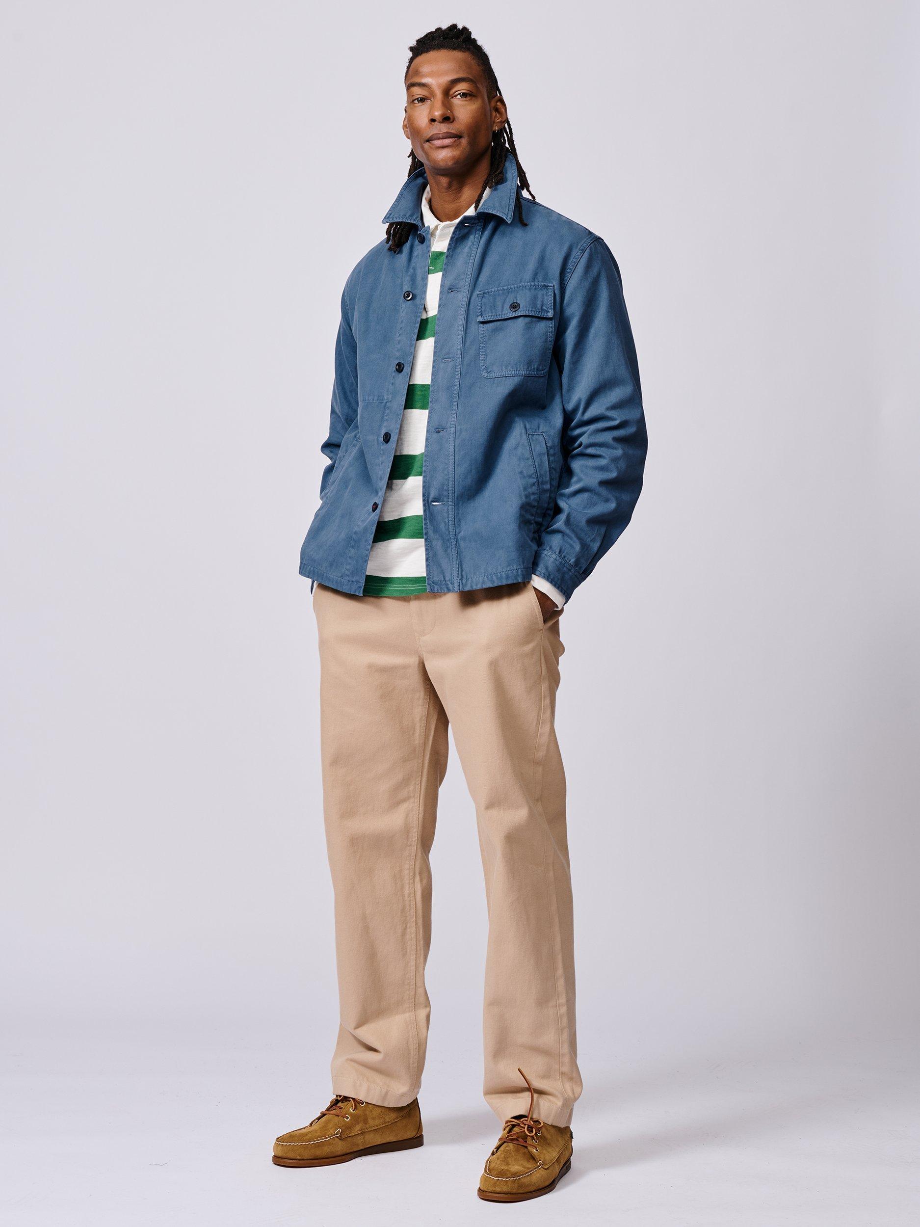 The Dowse jacket celebrates vintage-style workwear. This humble worker jacket or chore jacket is a menswear staple and is an ideal layering piece. Garment-dyed and then stone-washed, this heavyweight cotton layer already feels like your favourite old jacket.