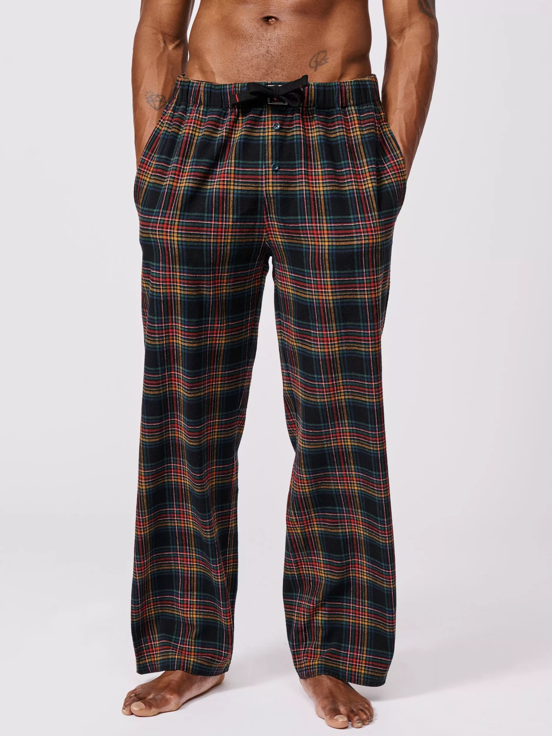 Lounge, relax, sleep in these pure cotton pyjama trousers in a check pattern. The drawcord elasticated waist ensures a comfortable fit.