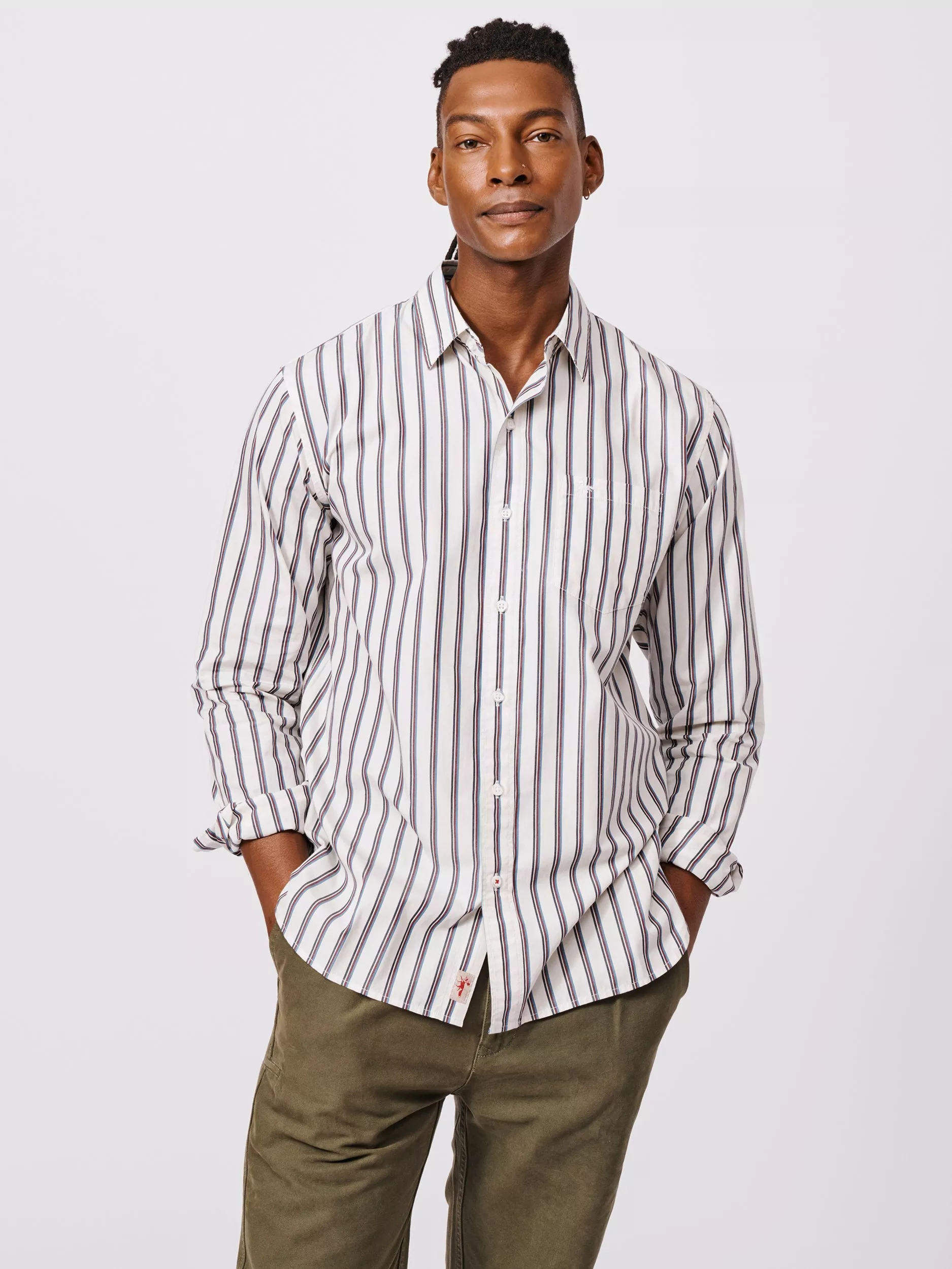 Shirts aren't just for the nine-to-five. Reworked for a more casual setting, this cotton design by Aubin is decorated in a traditional stripe pattern and is cut with a relaxed silhouette.