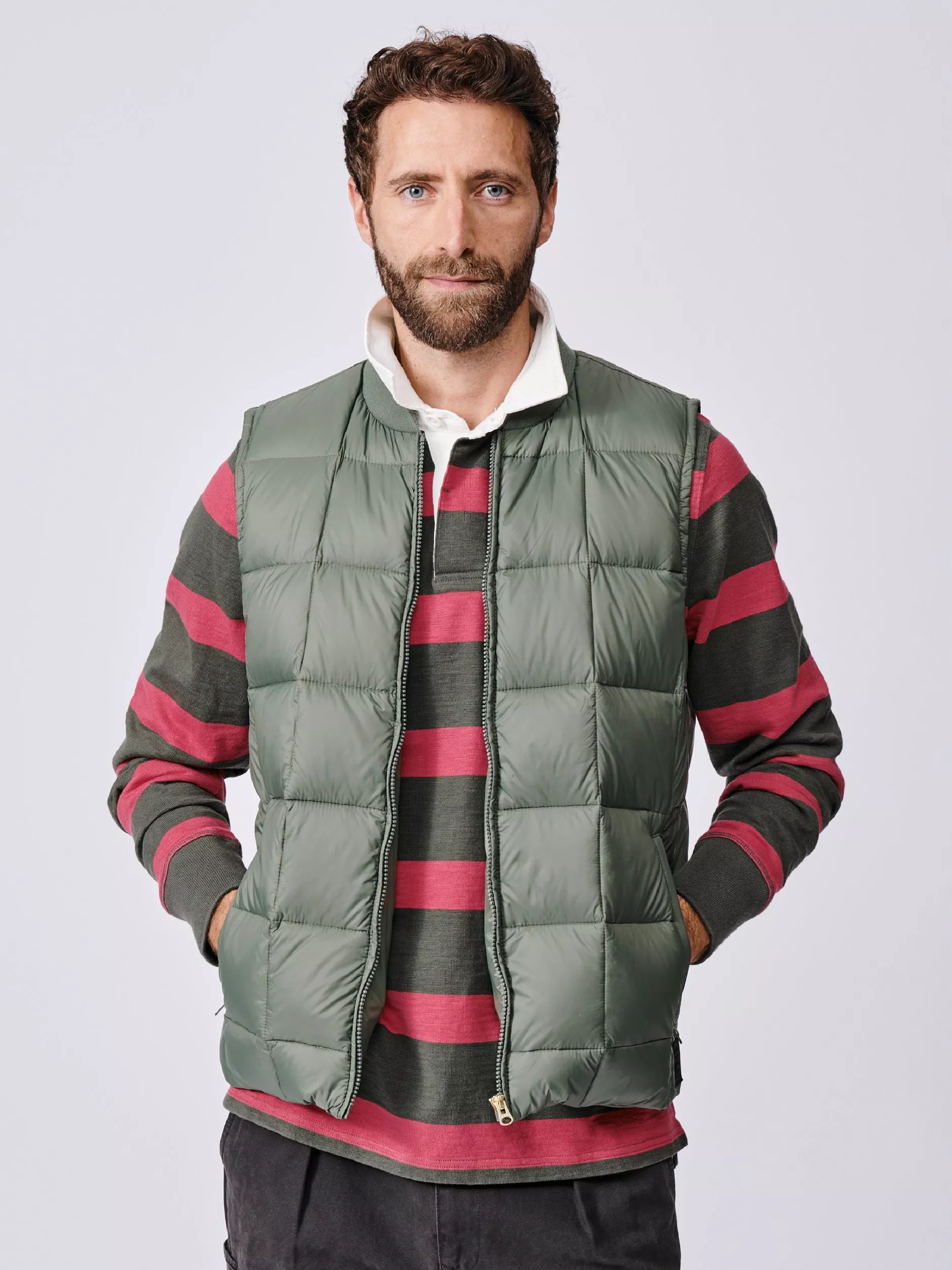 This pillow-soft gilet is the perfect layering piece this season. The Herriot has a lightweight nylon outer with square baffle quilting and down fill. The zip closure on the pockets and centre front adds security. It's finished with a bomber jacket-style ribbed knit neckline and Aubin patch branding at the hem.