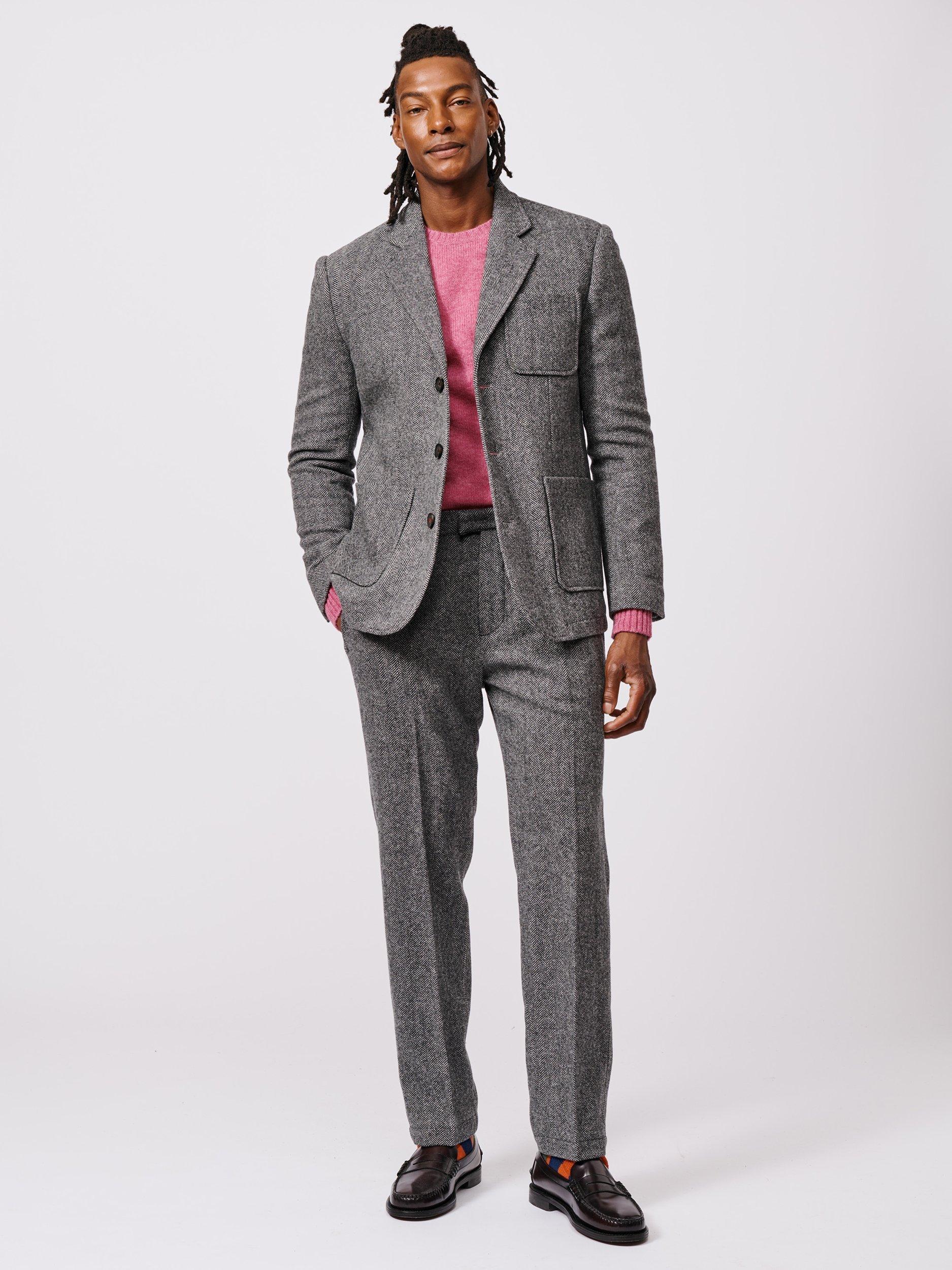 Chunky wool suit blazer which makes a style statement as a suit combination. With a front pocket and double side pockets.