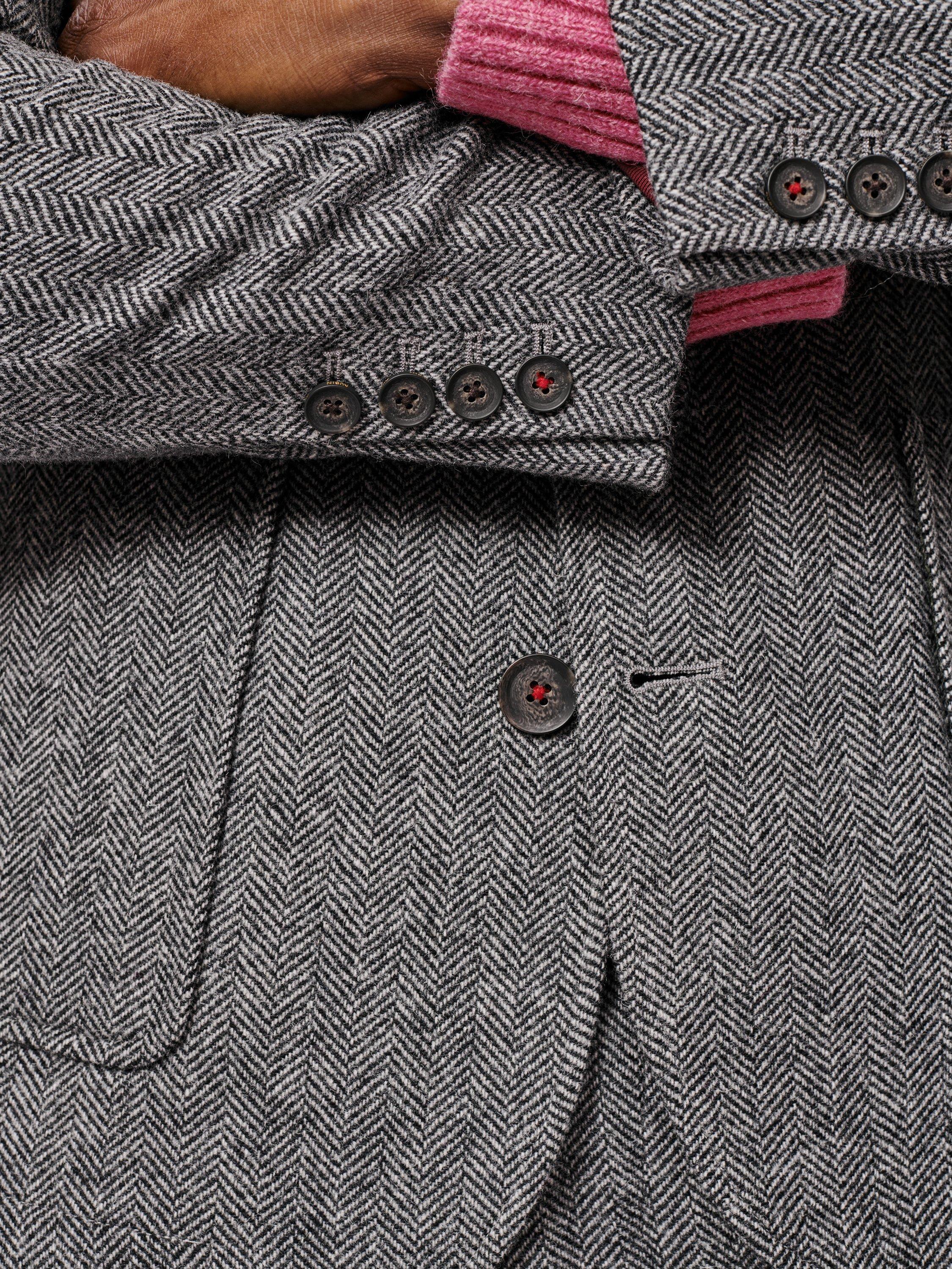- Shell fabric: 100% wool, Lining: 53% polyester, 47% viscose