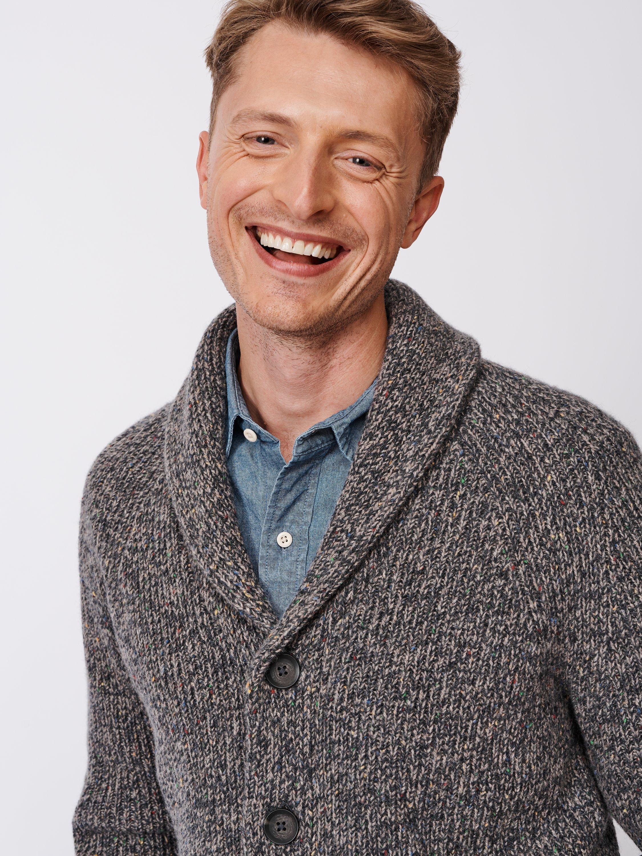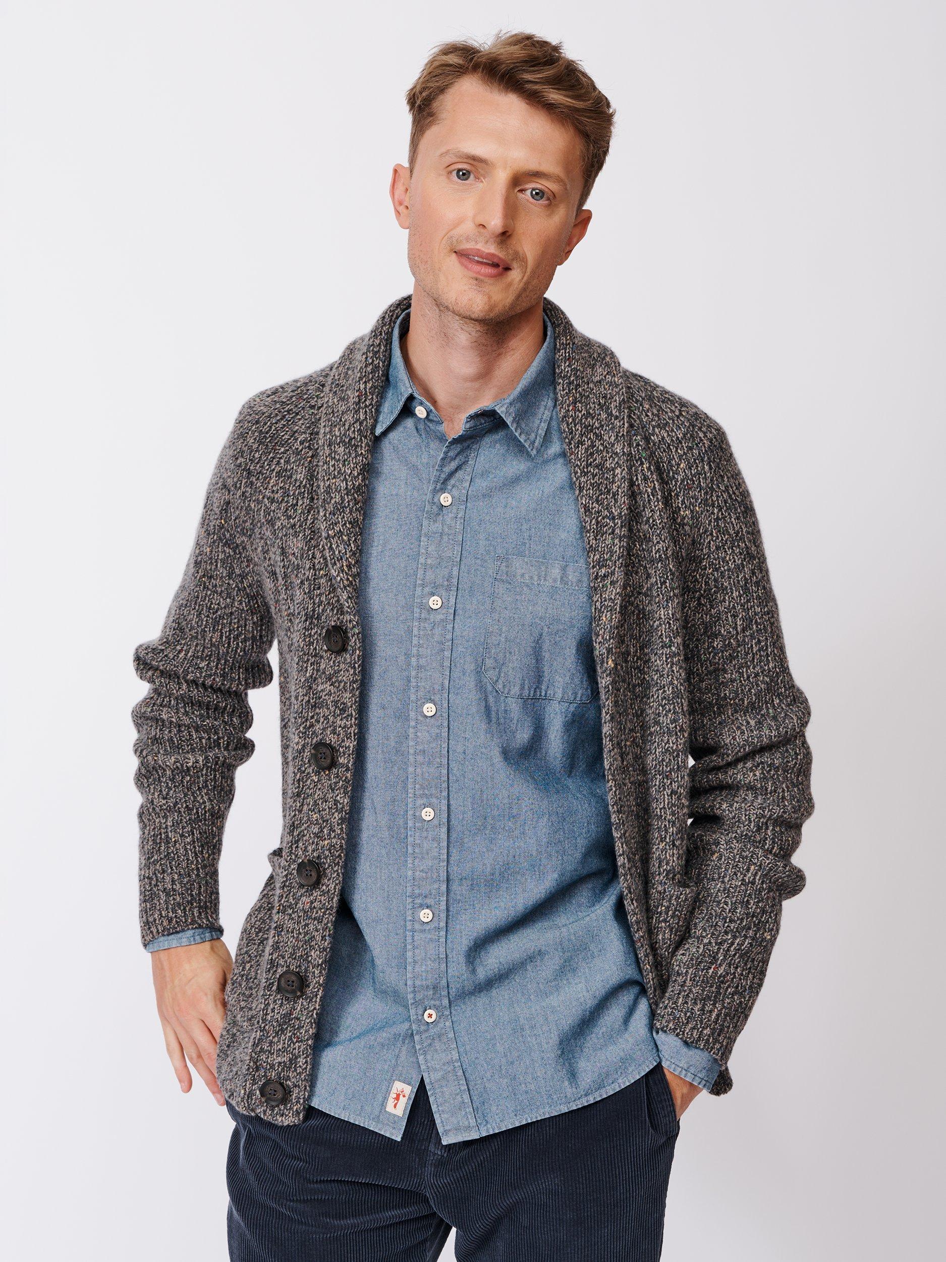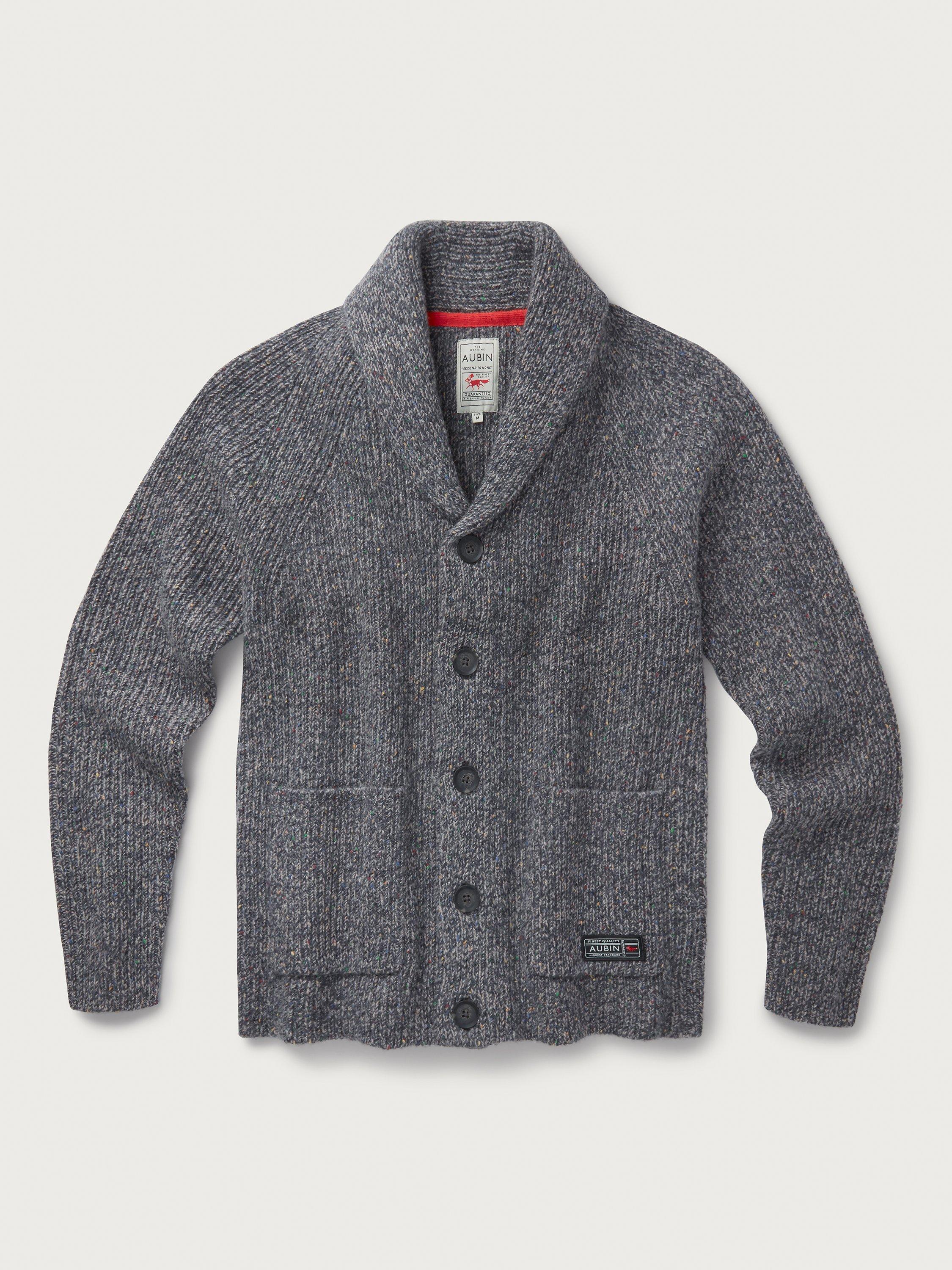 A firm foundation for cool-weather wardrobes, this shawl collar cardigan from Aubin helps you wrap up against the elements thanks to its warming lambswool blend.