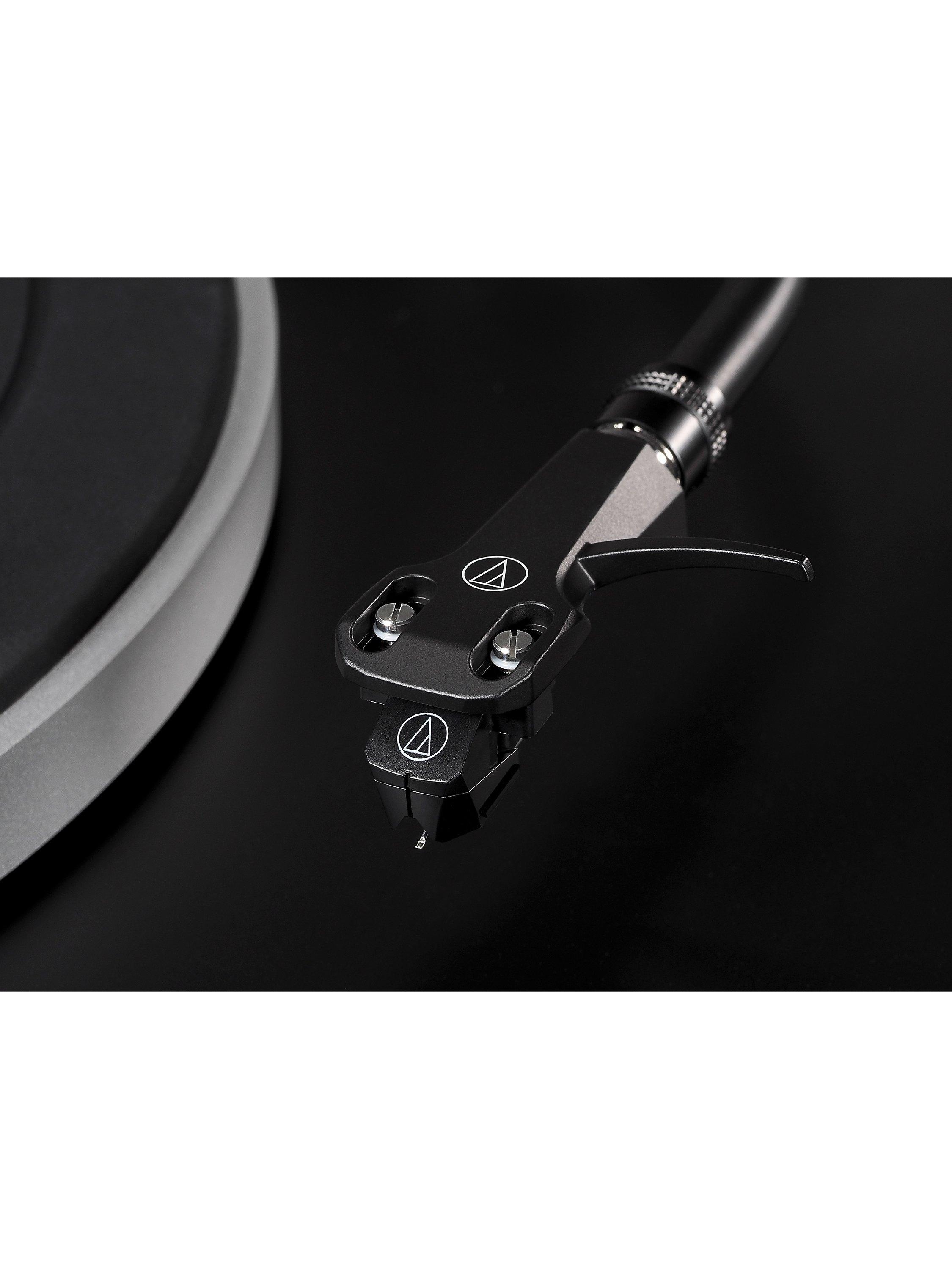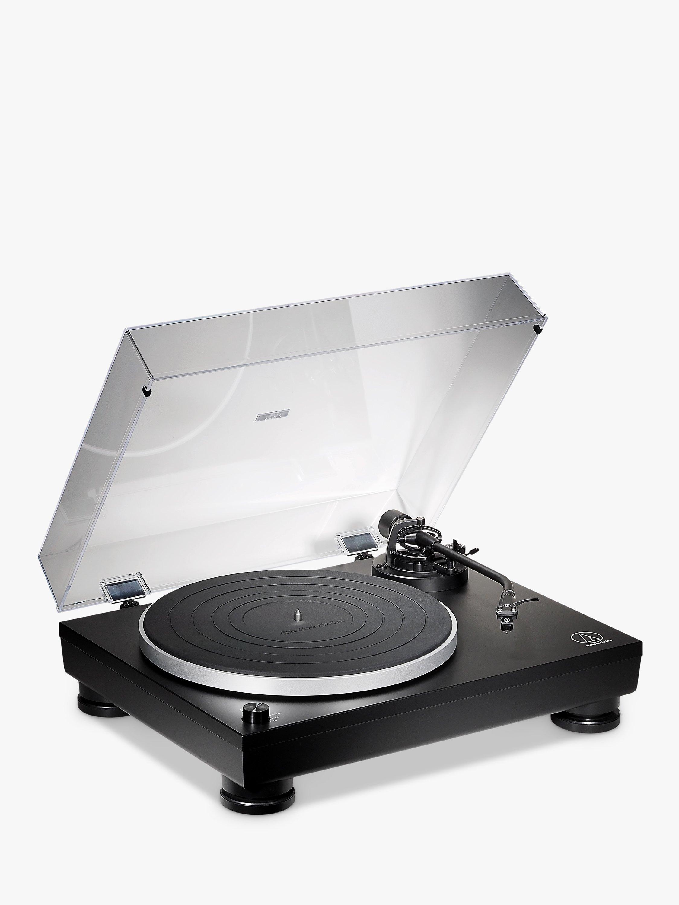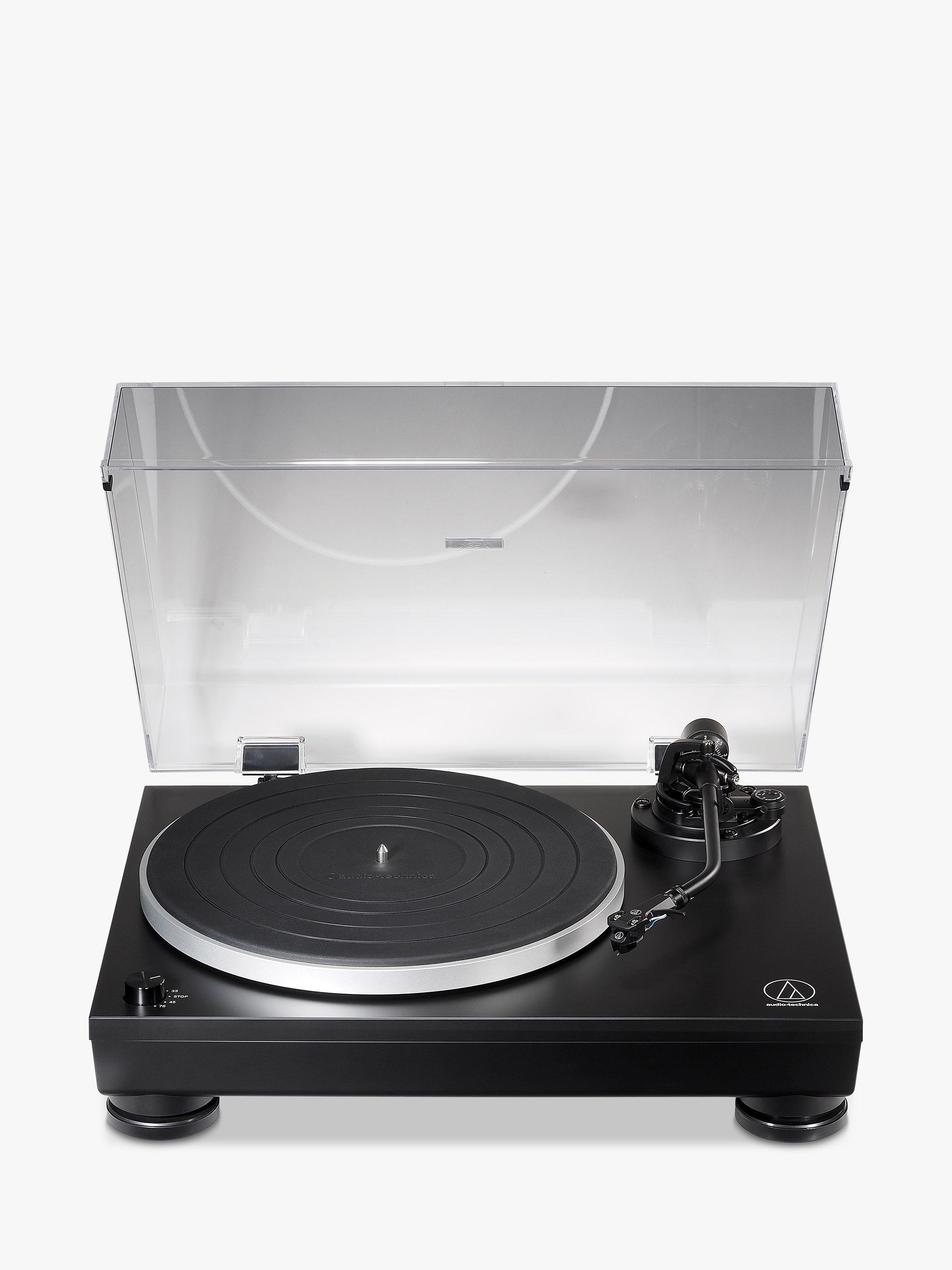 Following the company’s legendary 60s and 70s designs, the J-shaped tone arm is designed to avoid tracking errors, including an adjustable counterweight and anti-skate control. It’s fitted with Audio Technica’s lightweight AT-HS6 headshell and the AT-VM95E dual moving magnet cartridge, ensuring exceptionally clear playback. A direct-drive engine plays 33, 45 & 78 RPM records, so you can play your whole collection.