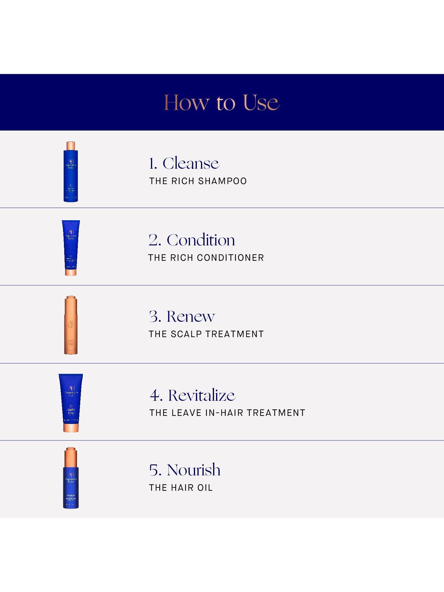 Apply to wet hair and massage gently into the hair and scalp Rinse and repeat as required For best results, follow with The Rich Conditioner.
