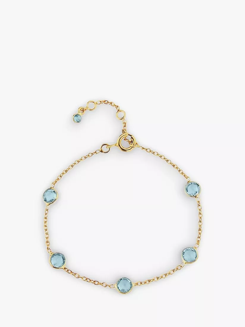 Sure to be a permanent favourite in your jewellery trinket, this blue topaz chain bracelet from Auree symbolises calm rejuvenation with its topaz stone.