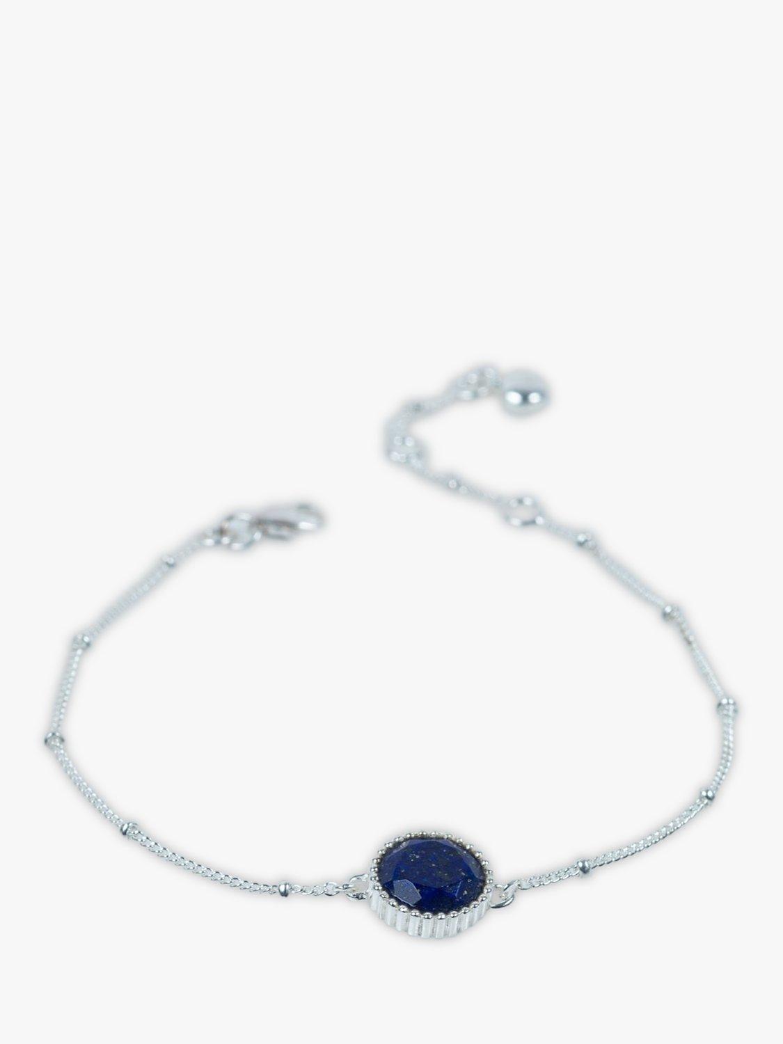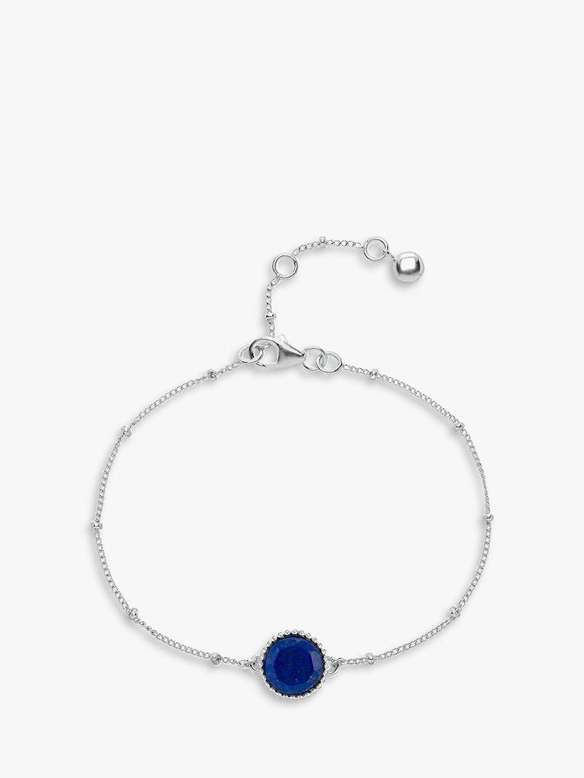 AureeBarcelona Personalised Birthstone Sterling Silver Beaded Chain Bracelet, Lapis Lazuli - September