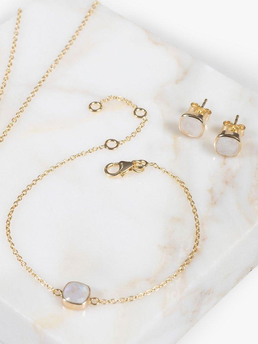 Inspired by the city of New York, this classic chain bracelet is perfect for any occasion. A pretty sparkling cushion cut semi-precious gemstone is set in polished gold vermeil (a thick layer of 18ct Gold on Sterling Silver) for a quality finish. The bracelet can be worn at three different lengths ensuring it will fit all sizes of wrist.