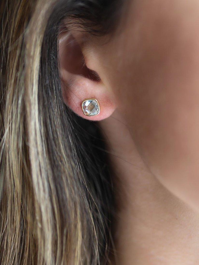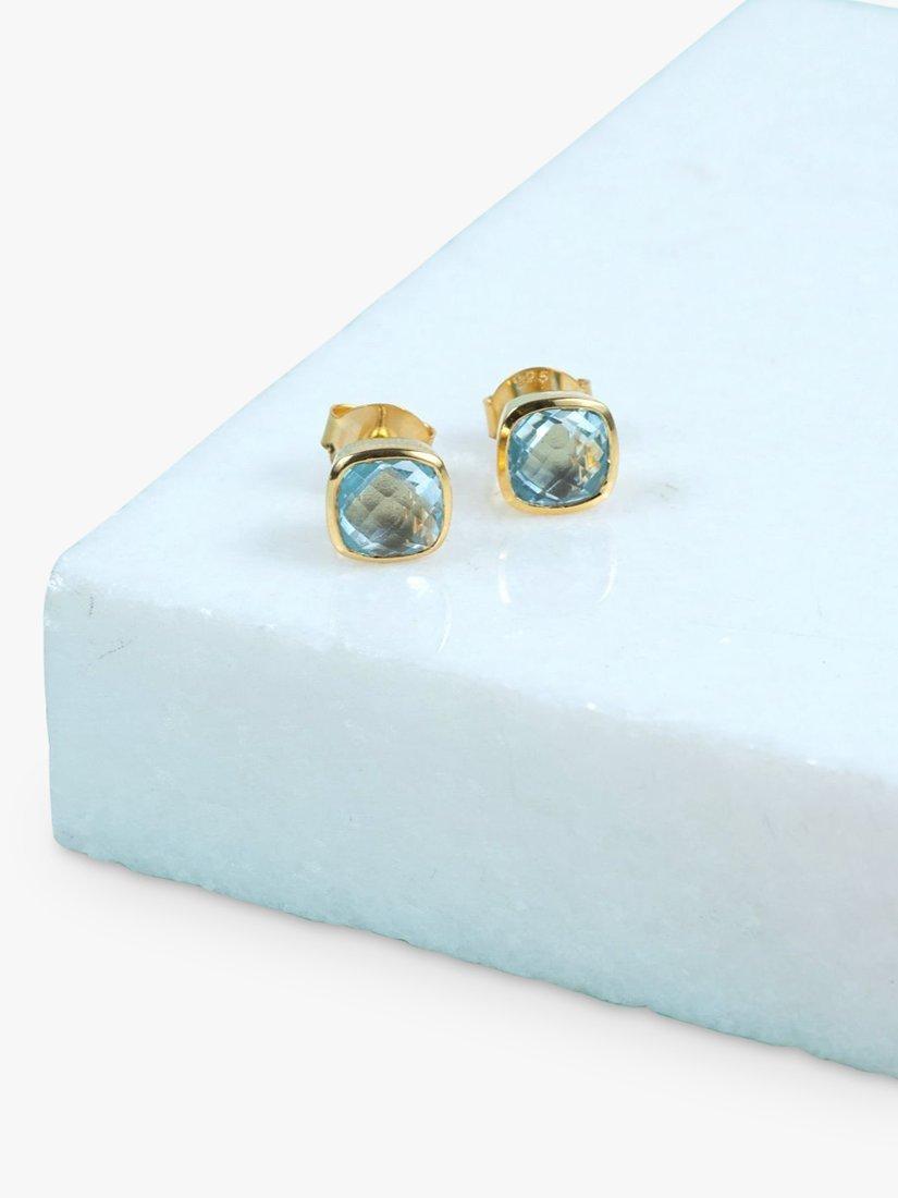 Cushion cut semi-precious gemstone stud earrings set in polished 18ct Yellow Gold Vermeil with a secure post and butterfly fitting. A great everyday style.
