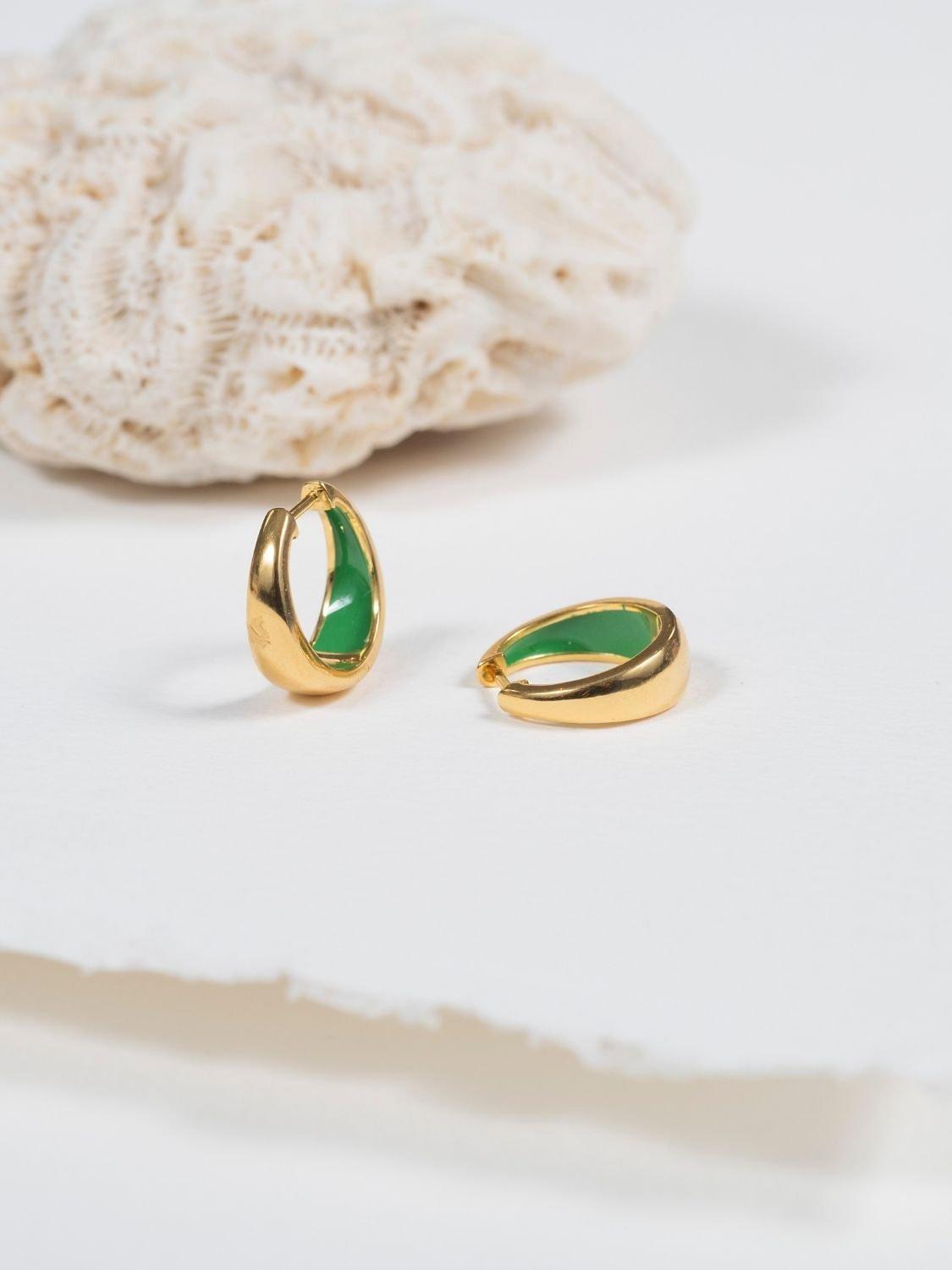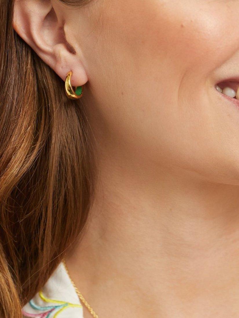 AureeHavana Enamel Detail Huggie Earrings, Gold/Apple Green