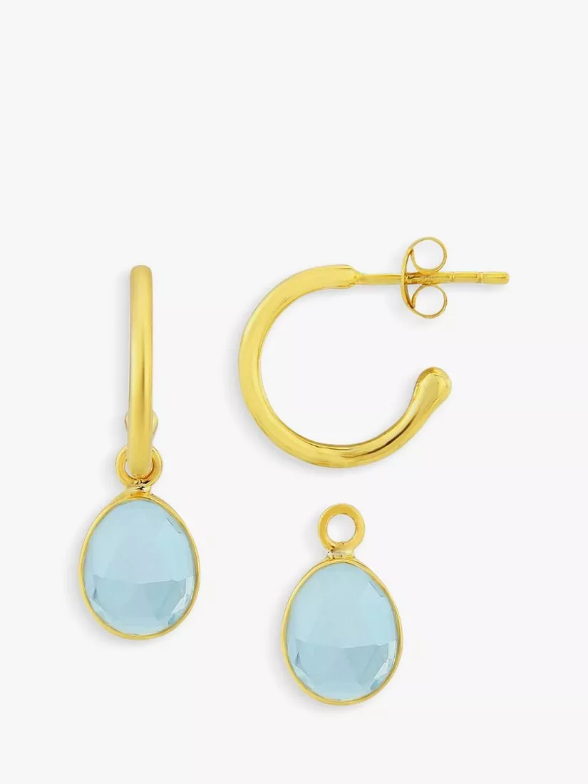 Beautifully designed by Auree and inspired by the cosmopolitan borough of Manhattan, these hoop earrings are designed with interchangeable blue topaz charms. They have a post and butterfly fitting that are suitable for those with pierced ears only.