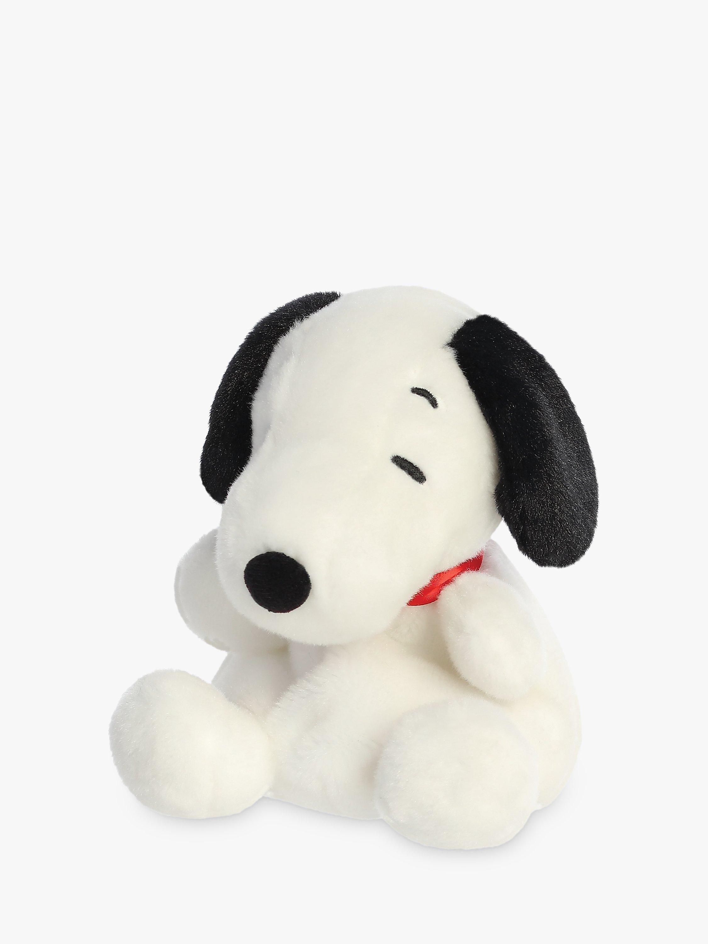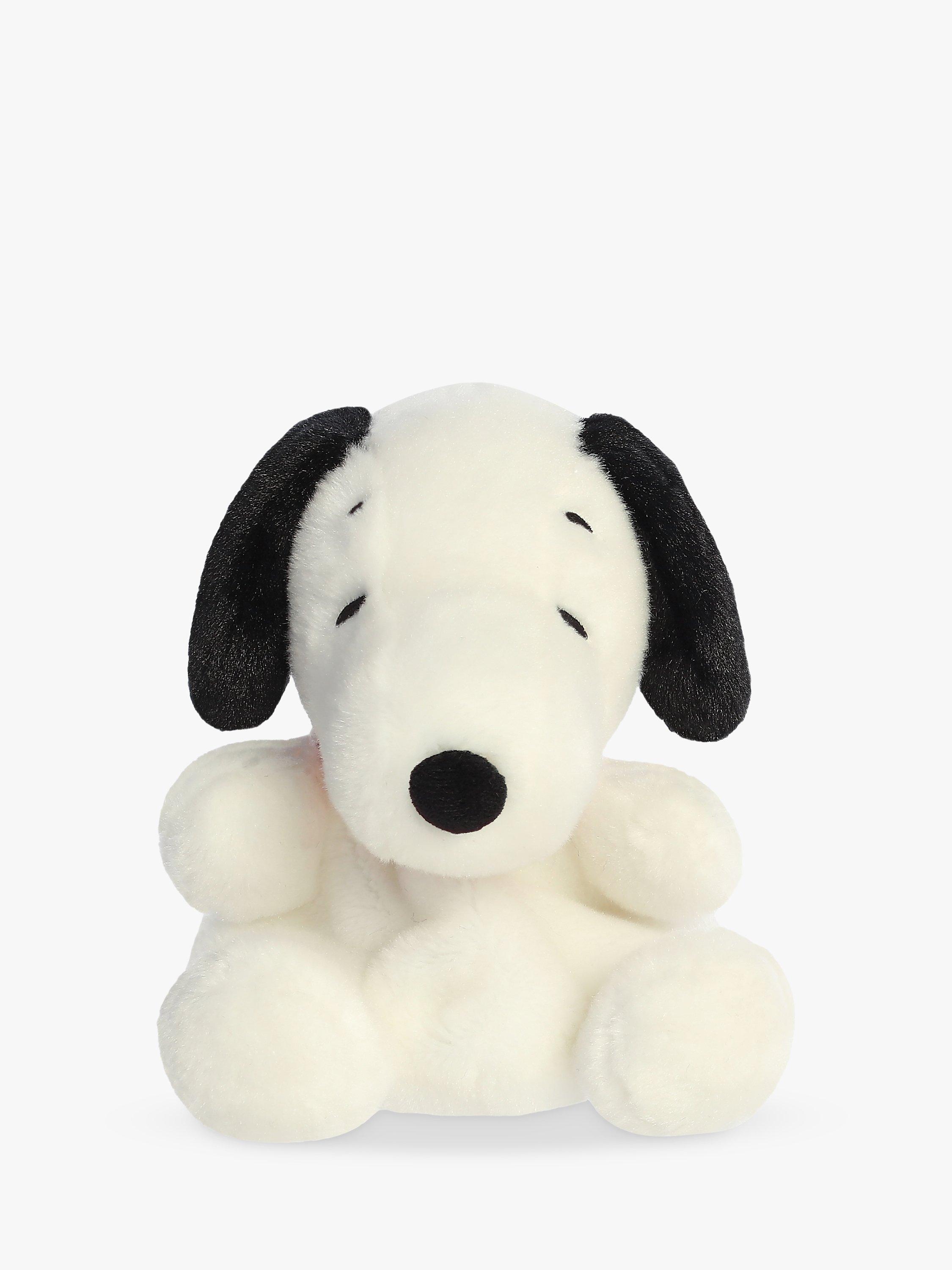 Meet Snoopy, the beloved beagle from the classic comic strip Peanuts, now transformed into an adorable member of the Palm Pals collection. This plush toy captures Snoopy's distinctive personality with its soft white fur accented by a black spot on its back and those familiar, expressive ears. Lightly filled with beans, Snoopy is crafted to fit snugly in the palm of your hand, inviting squeezes and cuddles.