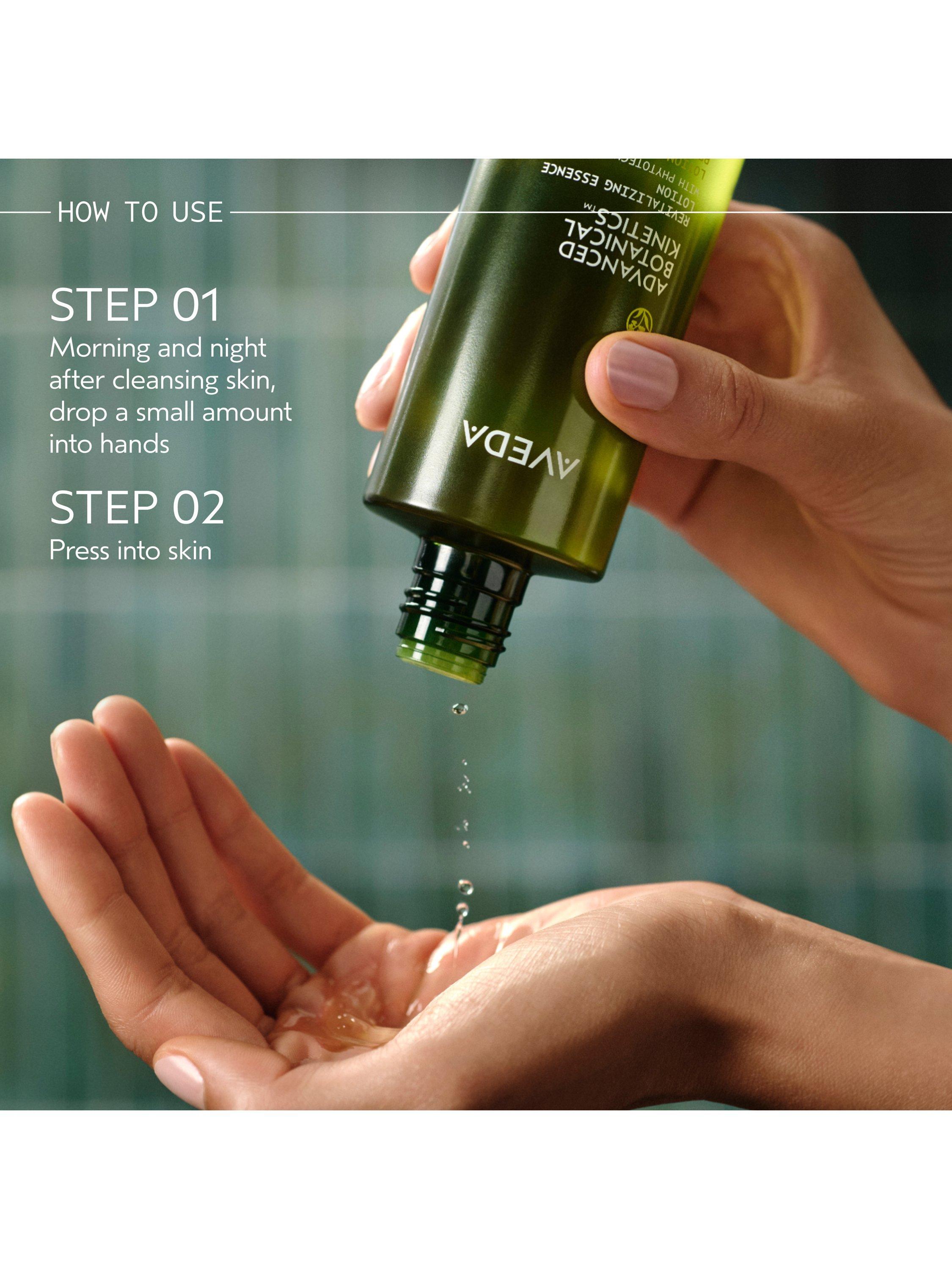 Press into skin using your hands after cleansing, morning and night.