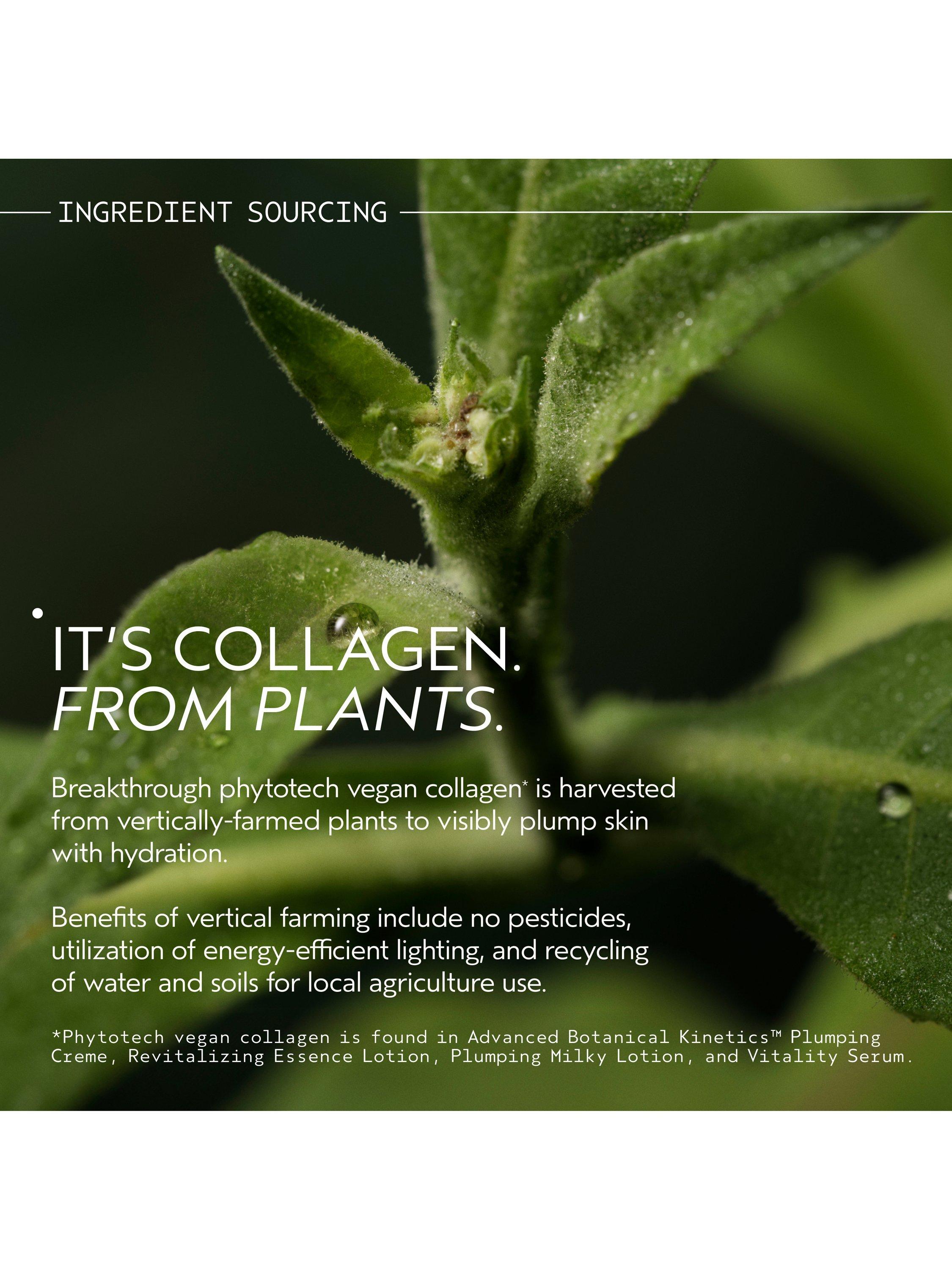 - Vegan Collagen: Our phytotech collagen amino acids, featured in our leave-on products, plumps skin with hydration, for skin that blooms with youthful vitality