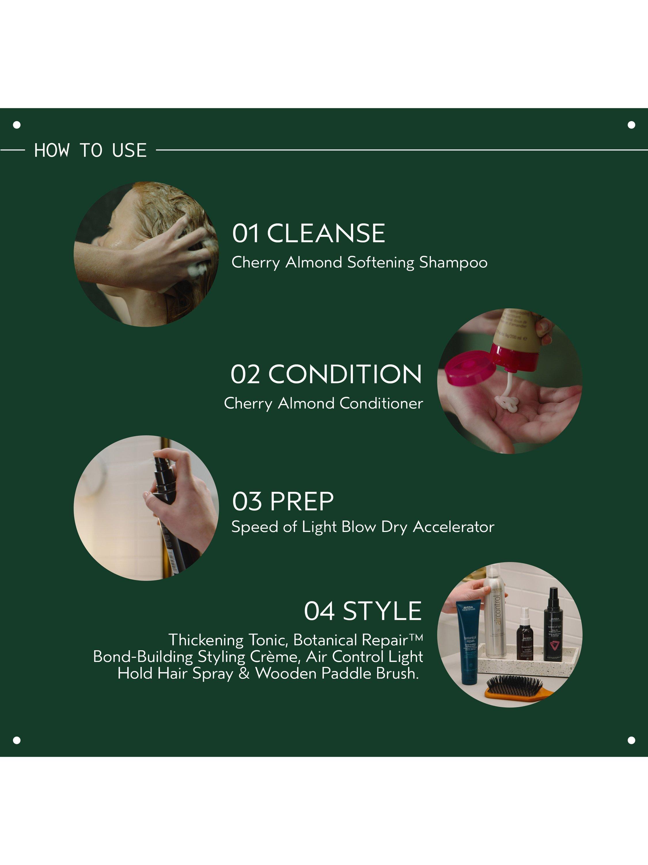 - Hold can 6–8 inches from dry hair, directedaway from eyes, and spray in short bursts.Layer product to build more hold.