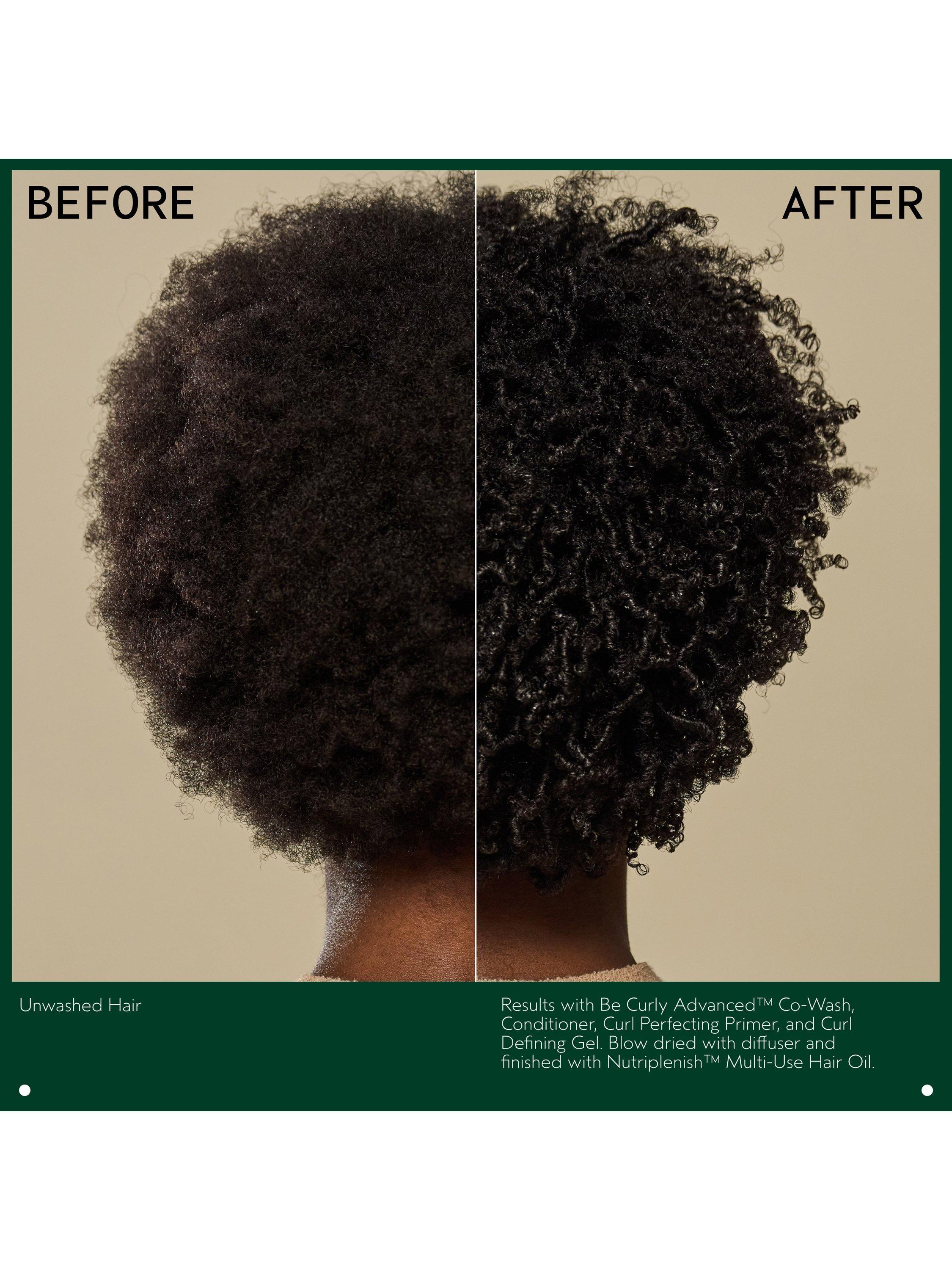 - On wash days, use Be Curly Advanced™ Shampoo, intensive curl perfecting masque and curl perfecting primer, then style with coil definer gel