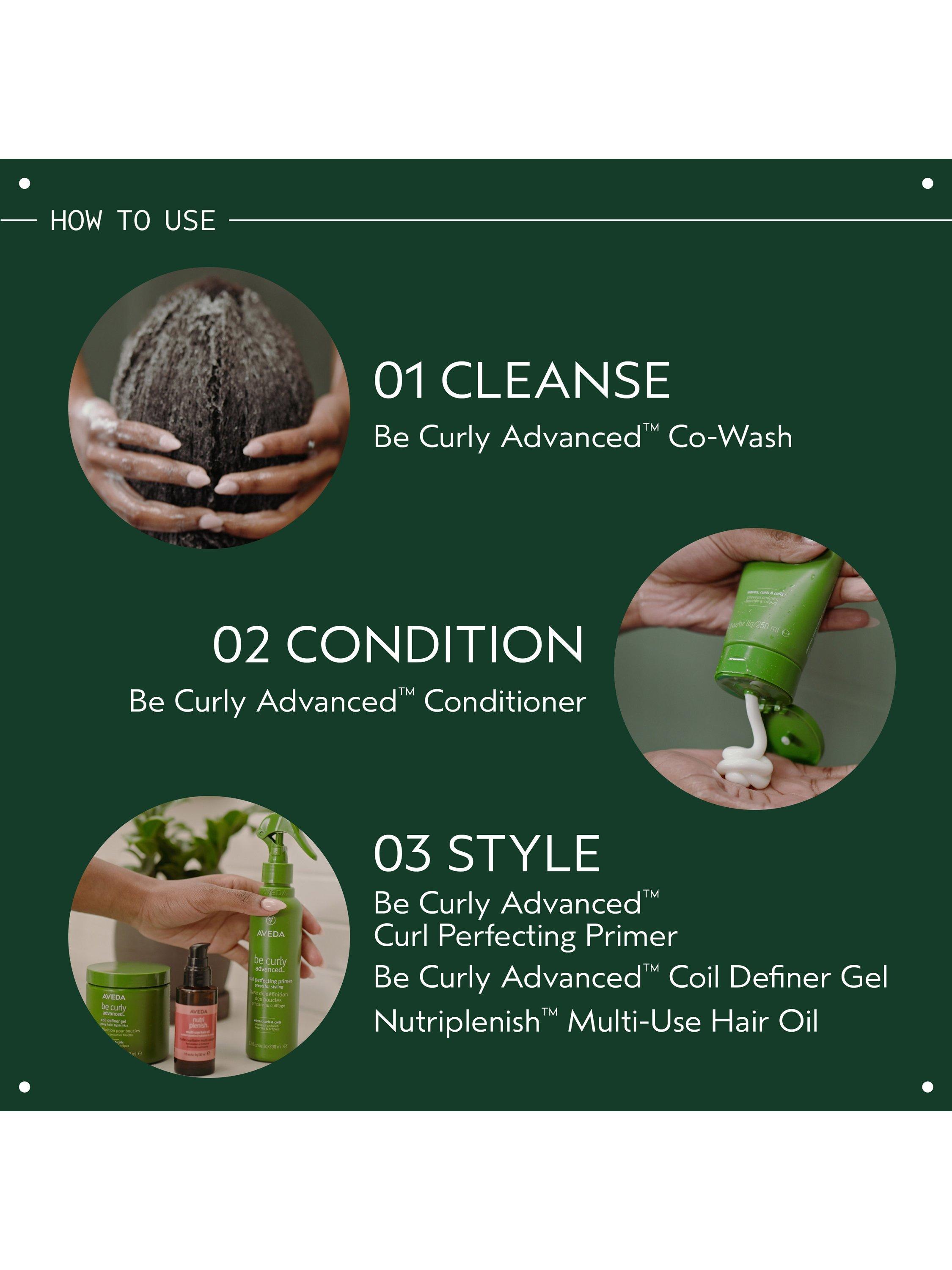 - On wash days, use Be Curly Advanced™ Shampoo, conditioner and Curl Perfecting Primer, then style with Curl Enhancer Cream