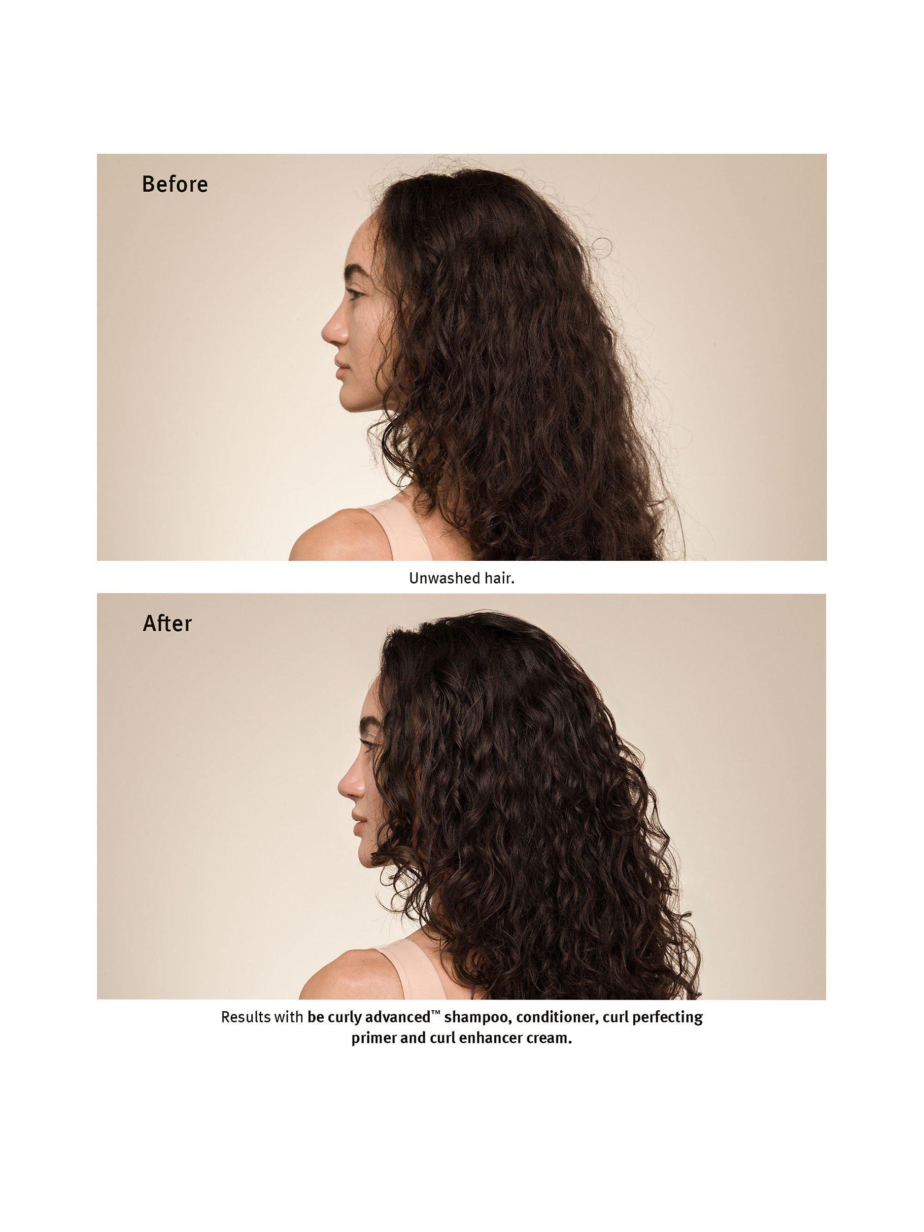 - On wash days, use Be Curly Advanced™ Shampoo, conditioner and Curl Perfecting Primer, then style with Curl Enhancer Cream