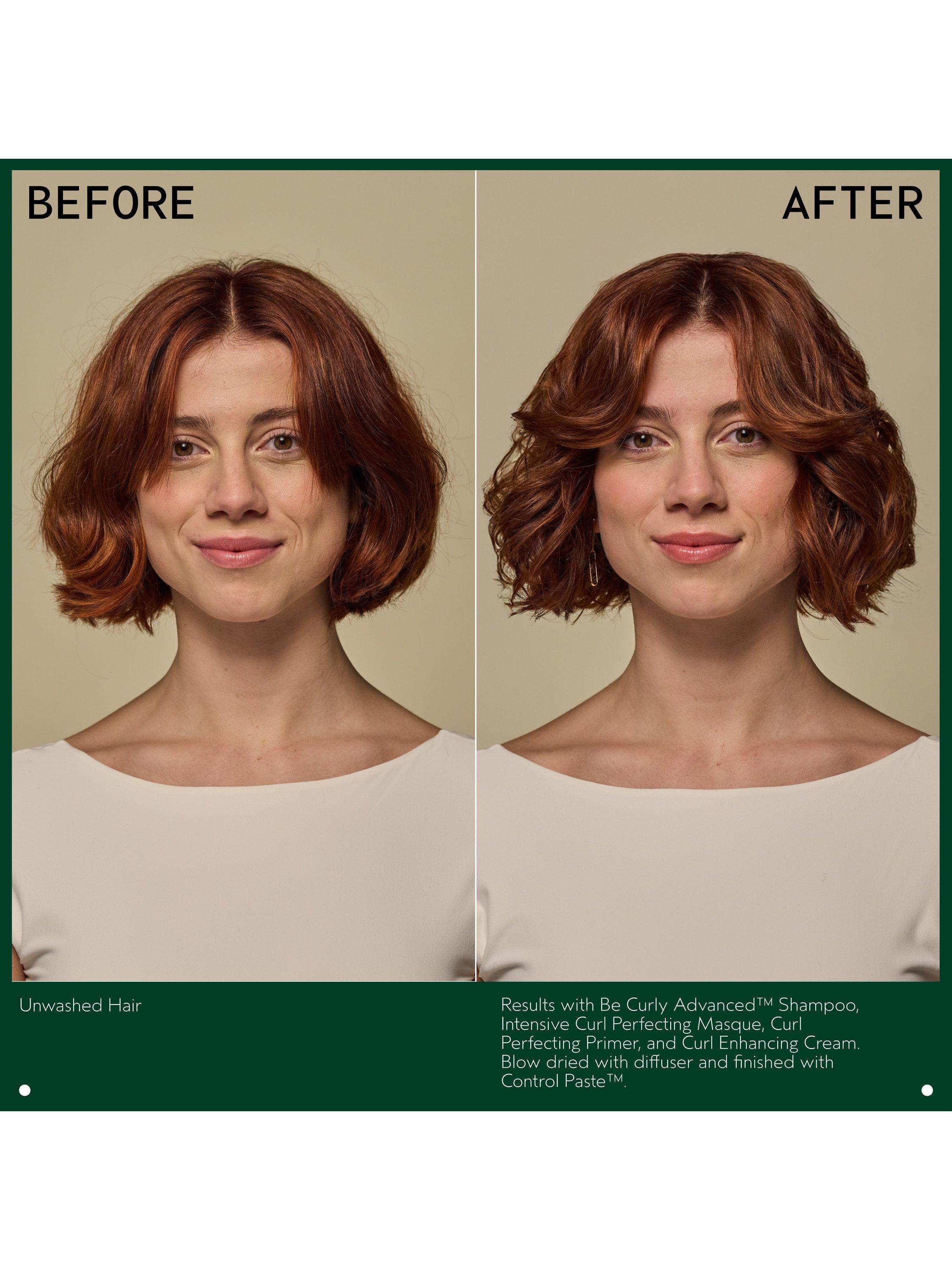 - On wash days, use Be Curly Advanced™ Shampoo, Conditioner and Curl Perfecting Primer, then style with Curl Enhancer Cream