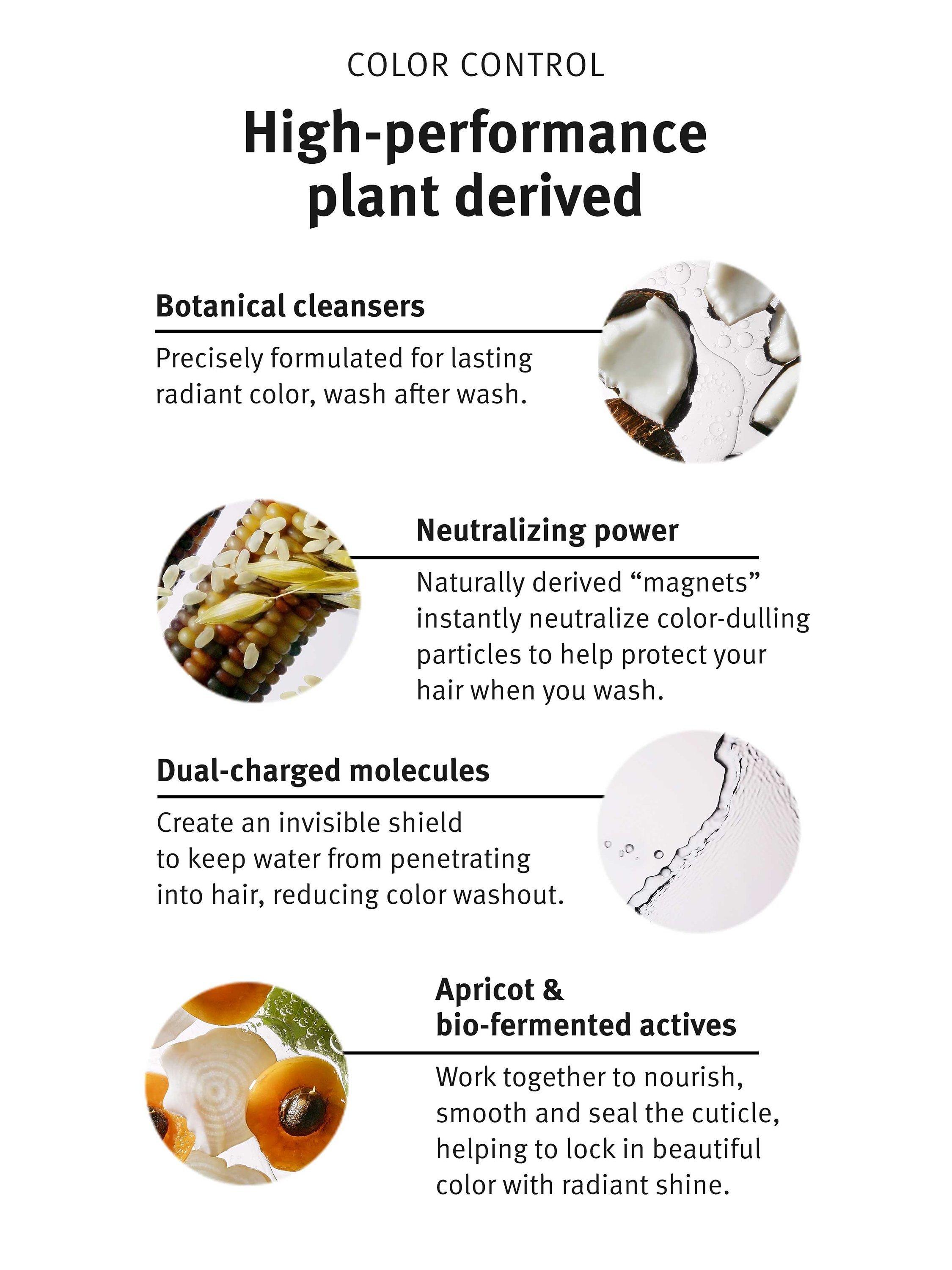 A combination of botanicals helps to protect colour-treated hair while leaving it silky, soft and shiny. Use with colour control conditioner.