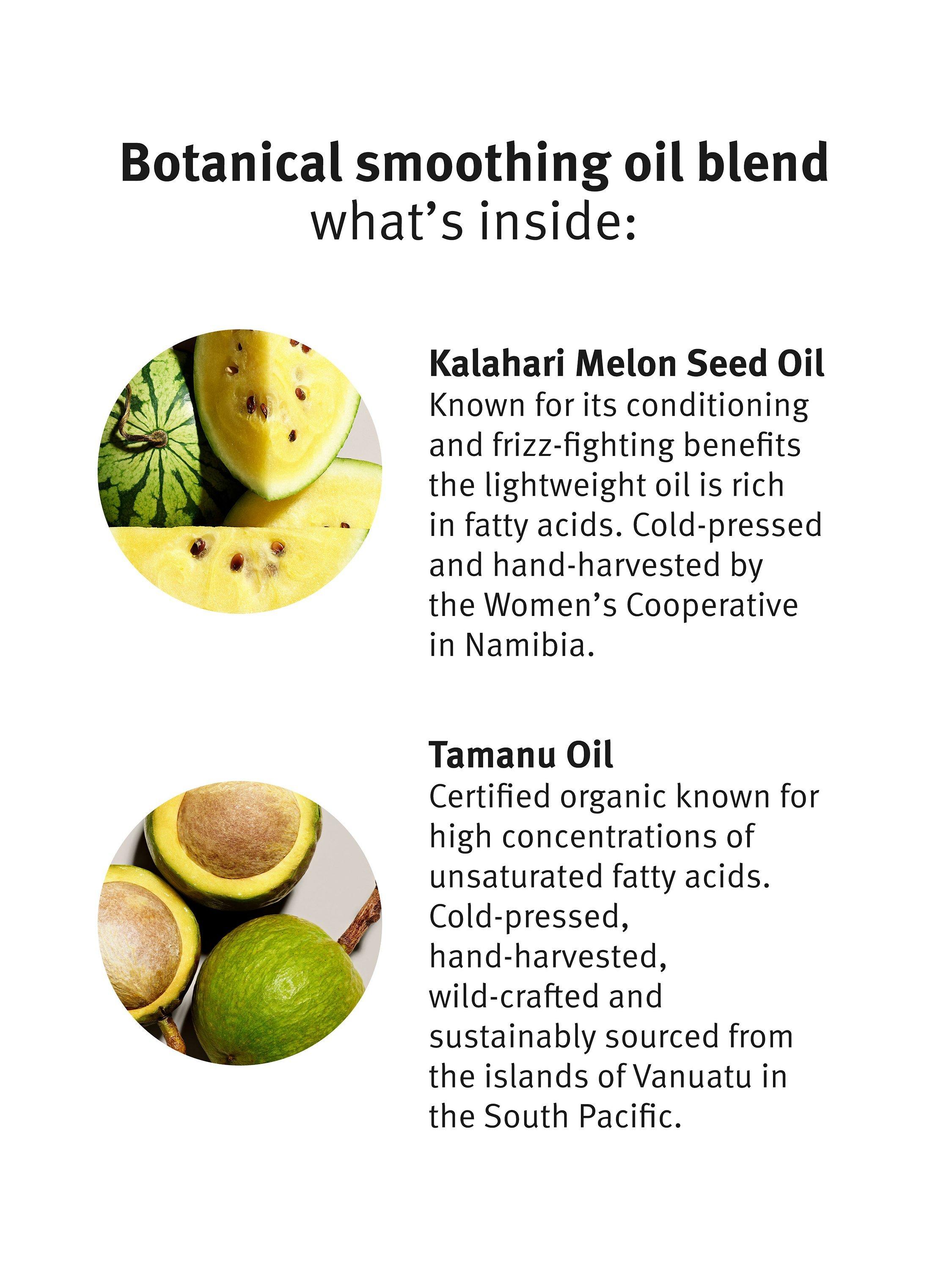 The vegan formula features a plant polymer shield and botanical smoothing oil blend to protect against humidity, keeping hair smoother and sleeker.