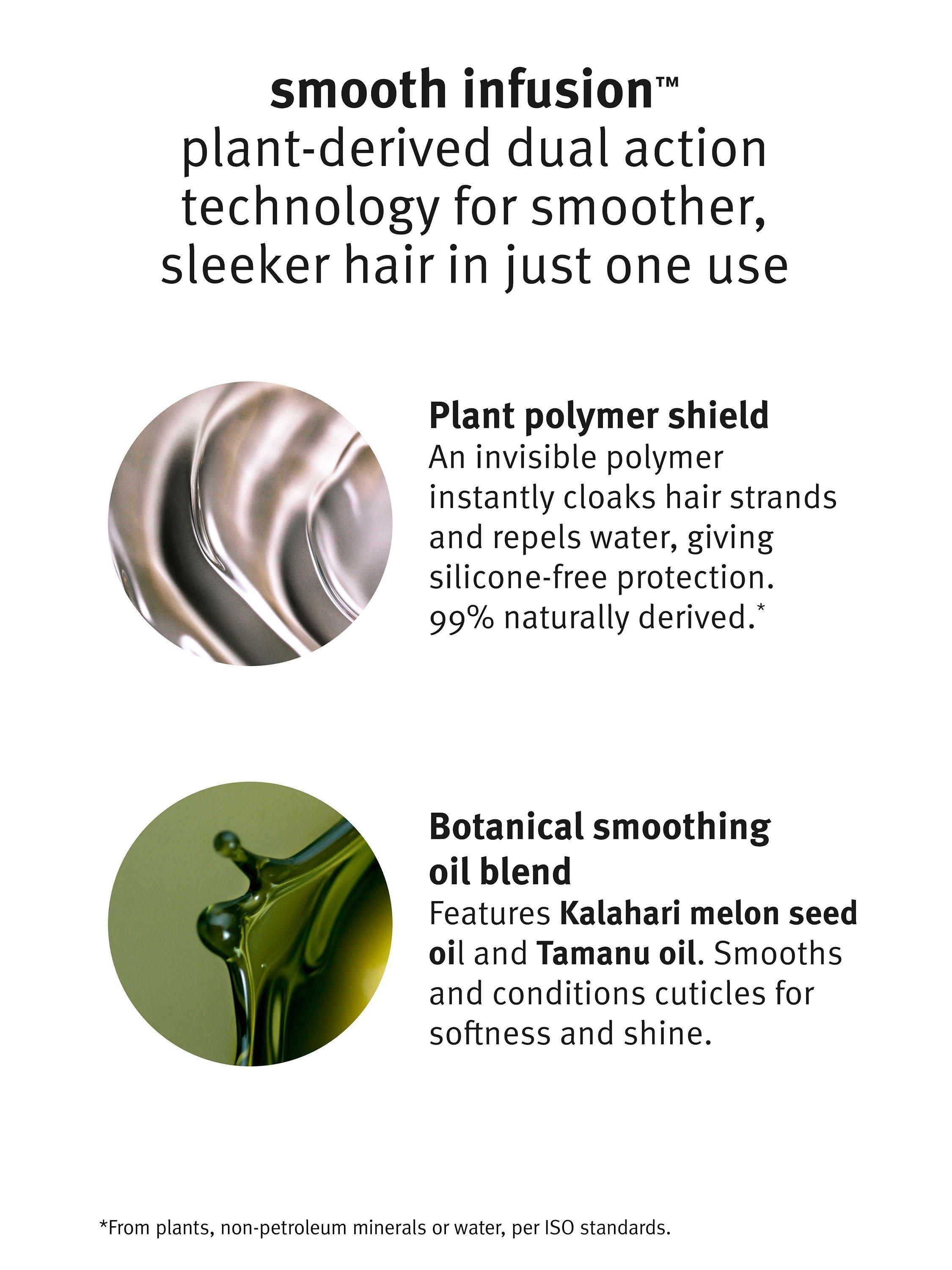 The vegan hair-smoothing formula features a plant polymer shield and botanical smoothing oil blend to protect against humidity, keeping your sleek hair smoother for longer.