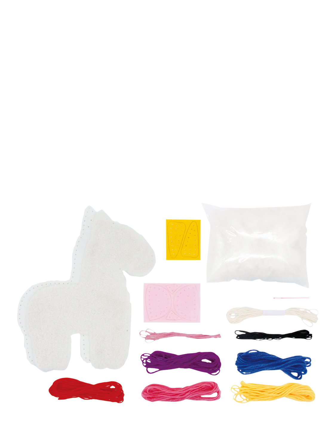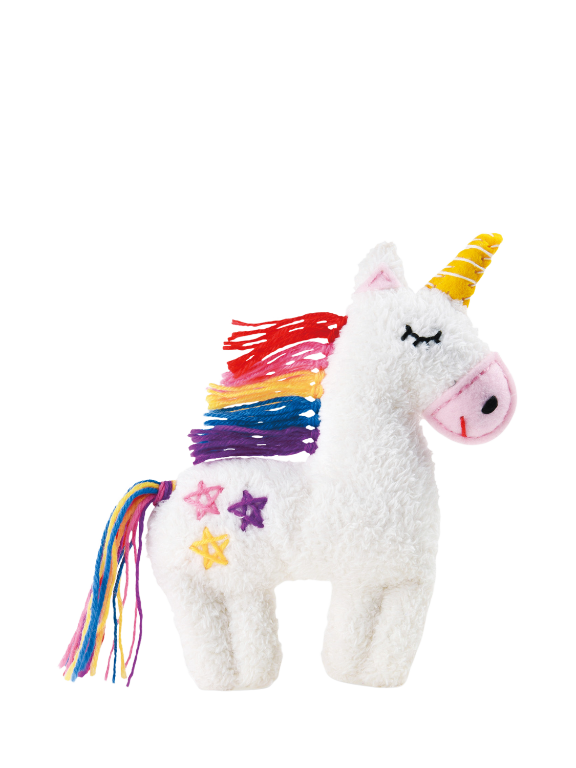 Children will love creating their very own 25–30cm plush unicorn friend with this beginners sewing kit.