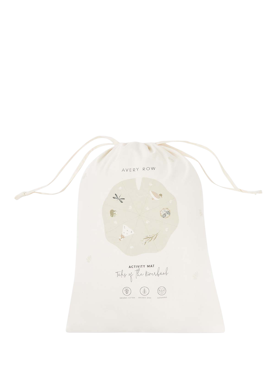 This activity mat features a number of Avery Row's favourite friends with sensory elements that will engage and entertain your little one. Made from organic cotton and recycled polyester filling, this mat will fit perfectly into your home. Comes with a drawstring canvas bag for easy storage.