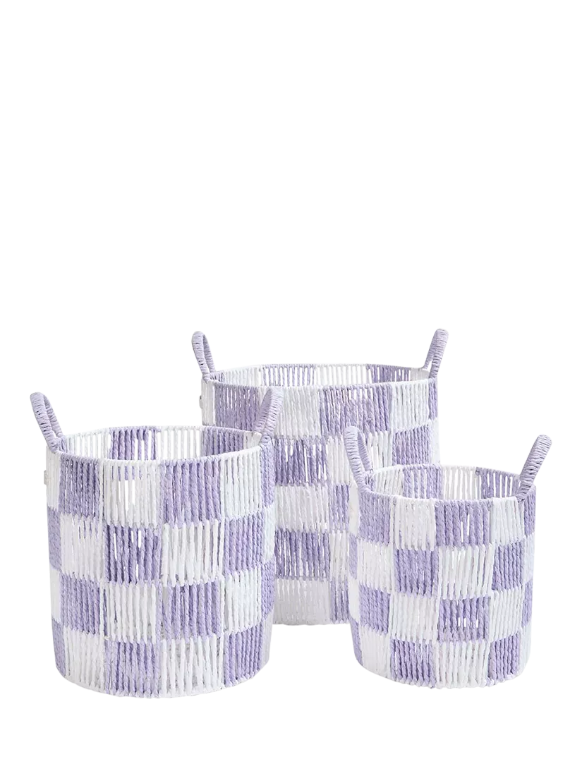 Set of 3 baskets made with paper wrapped around a sturdy wire frame. As they're handwoven and unique, it is to be expected that there may be small imperfections in the weave.