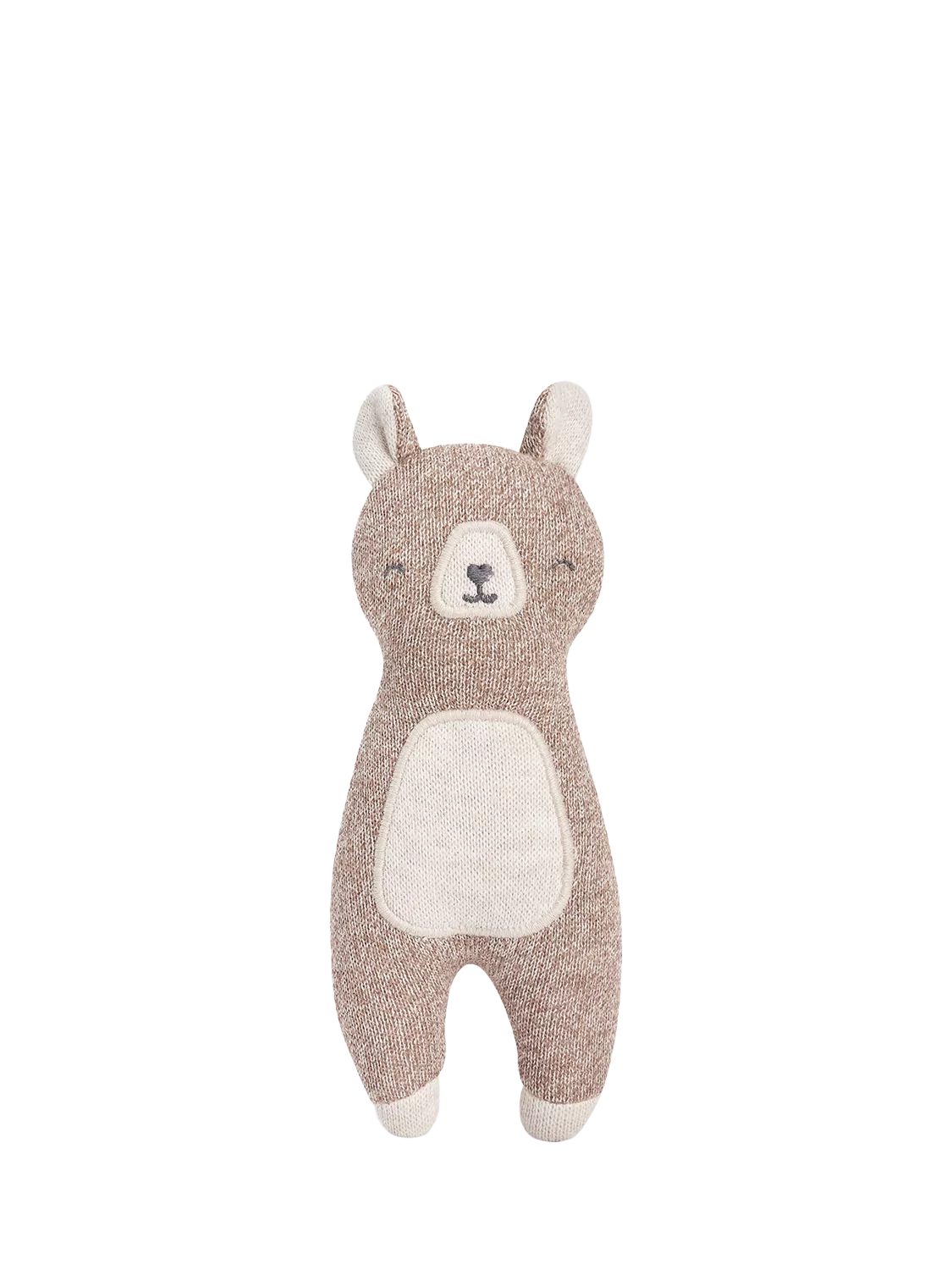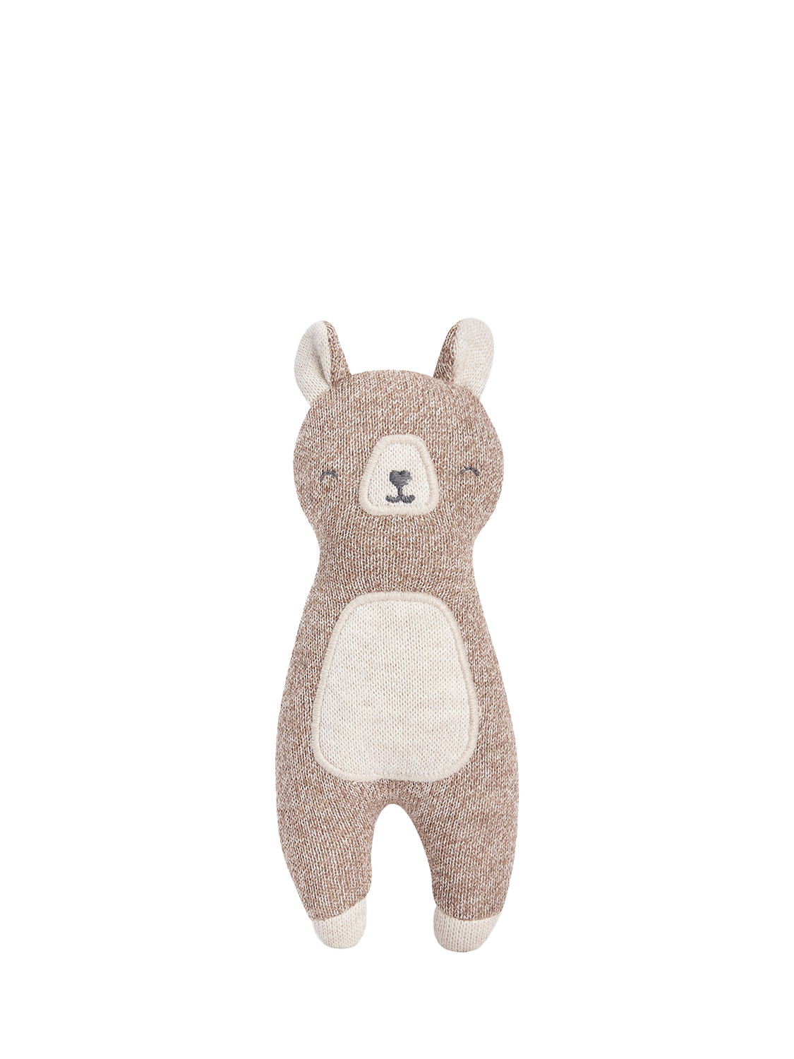 Meet your little one's first friend, the Little Hands Toy. This sweet brave bear has been designed for little hands to grip, snuggle and squish. Made from organic cotton and organic dyes, the knitted bear is soft on your little one's skin and kind to the environment. The recycled polyester filling means this toy is lightweight and super snuggly, the perfect companion for the new arrival in your life.