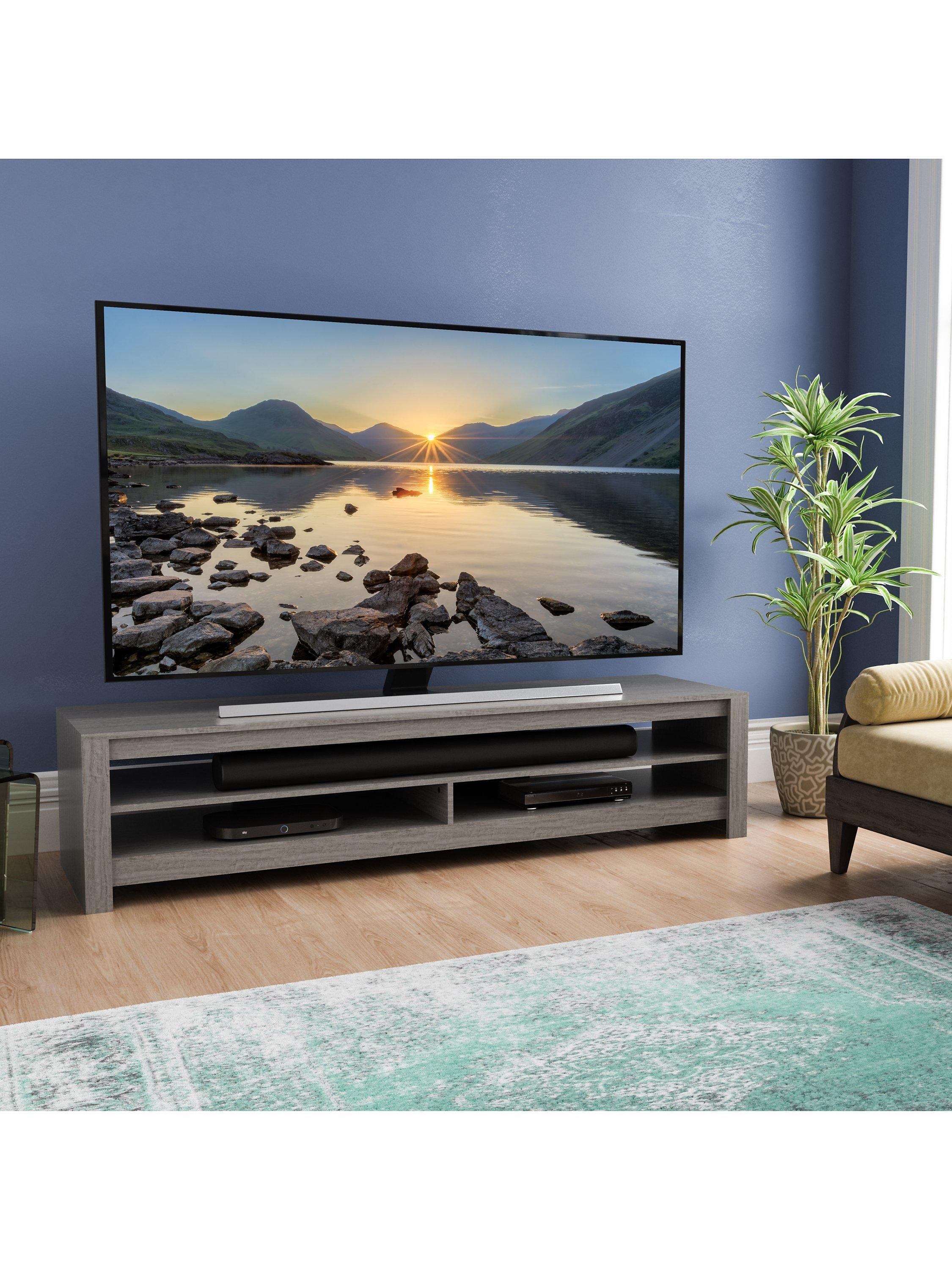 Constructed from sturdy and naturally attractive wood, it supports TVs of up to 85 inches and 55kg, with the lower shelves holding up to 10kg each.