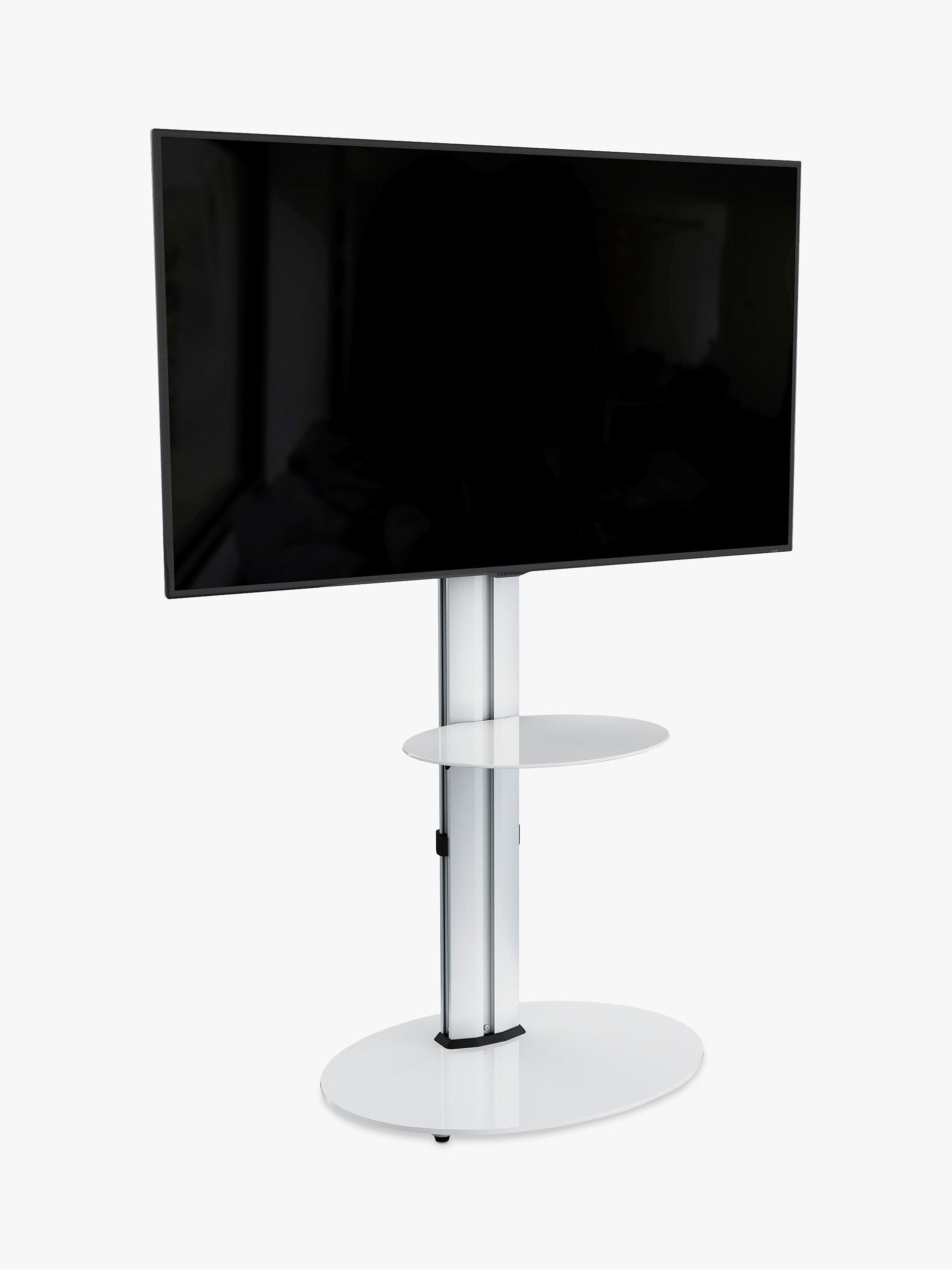 AVF's FSL600 is a stylish and easy alternative to mounting your TV on the wall, and provides a complete solution for storing your TV and AV equipment. A sleek, swivelling column offers a secure, raised TV position for comfortable viewing from any angle. Below, the height-adjustable glass shelf and oval base provide generous storage for players and consoles. It fits perfectly into corners, and cables can be easily hidden from view at the rear.