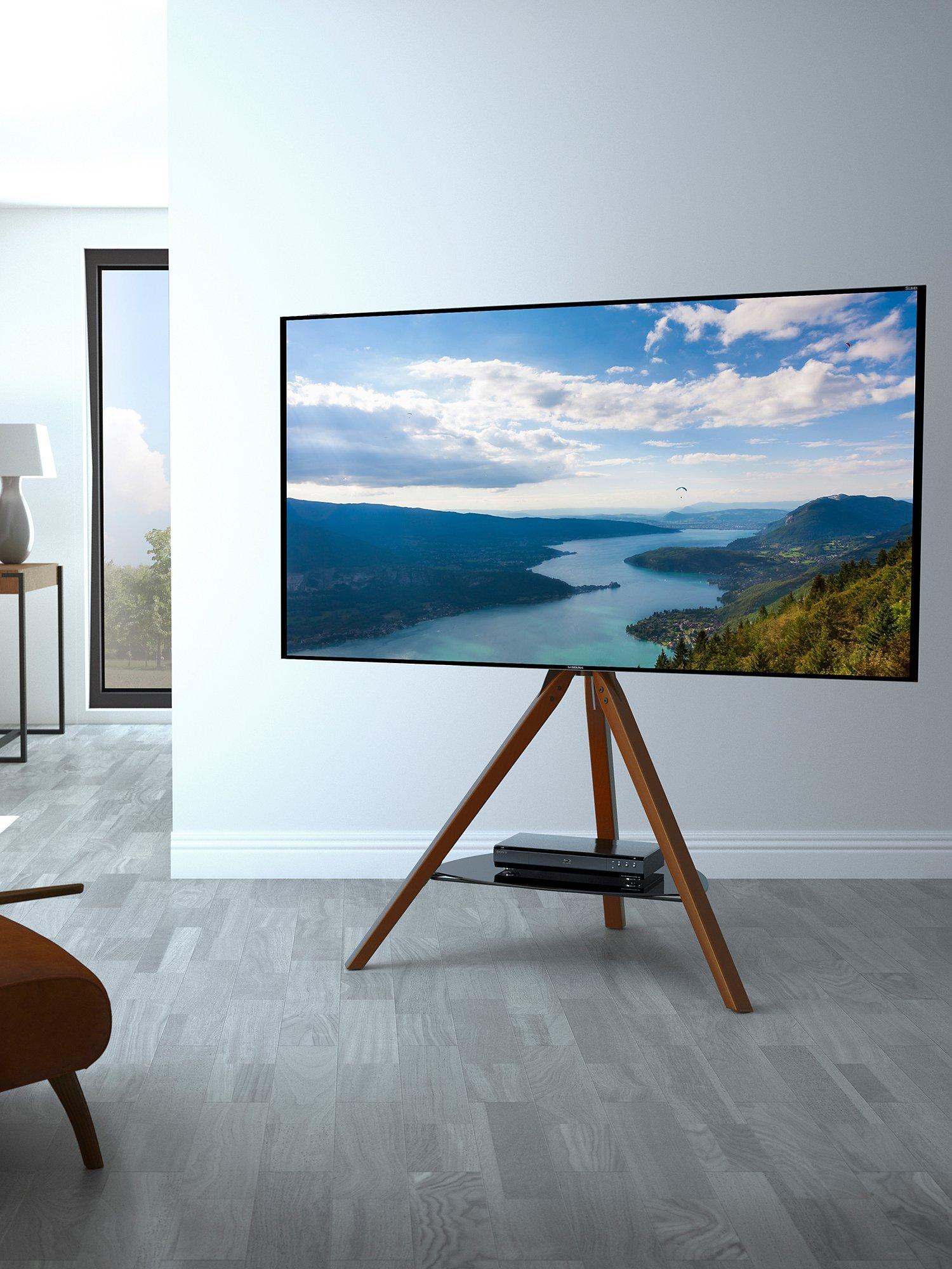 The stylish Hoxton Tripod TV Stand has real wood legs, a black glass AV shelf and height adjustable TV Mount, so you can set your screen at just the right viewing level. Plus, there’s no need to anchor it to a wall, it’s completely free-standing and can be positioned anywhere.