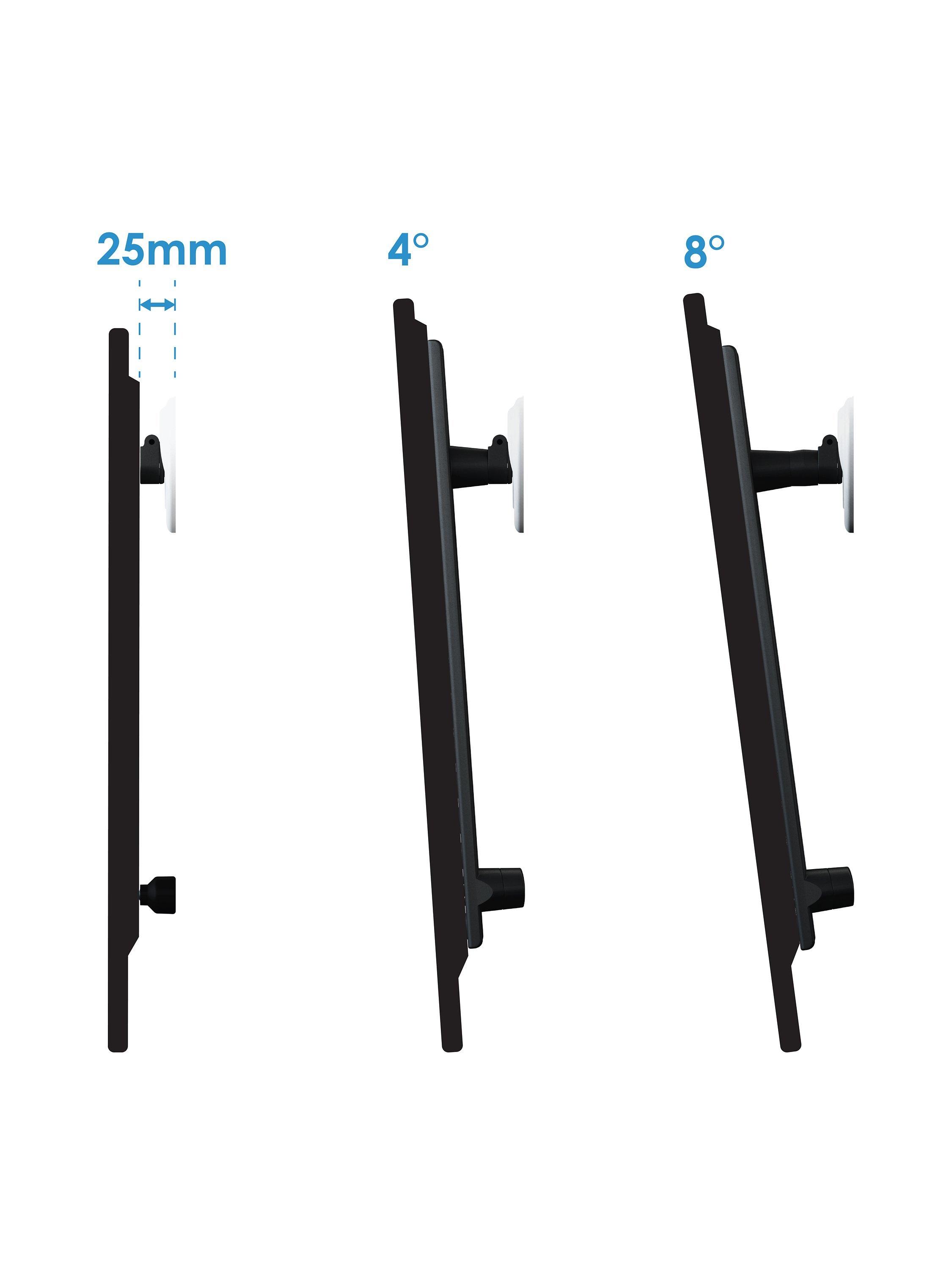With universal TV compatibility, the JML8651 features UNIMAX Any Wall Mounting technology meaning it’s suitable for attaching to plasterboard, wood and metal stud, brick, dot and dab, concrete, or any combination of these wall types, so you can mount your TV anywhere on any wall (all fixings are included). The three fixed mounting positions let you mount your TV flat to the wall with a low profile finish or with 4° or 8° of fixed tilt, perfect for TVs in raised positions and avoiding screen glare.