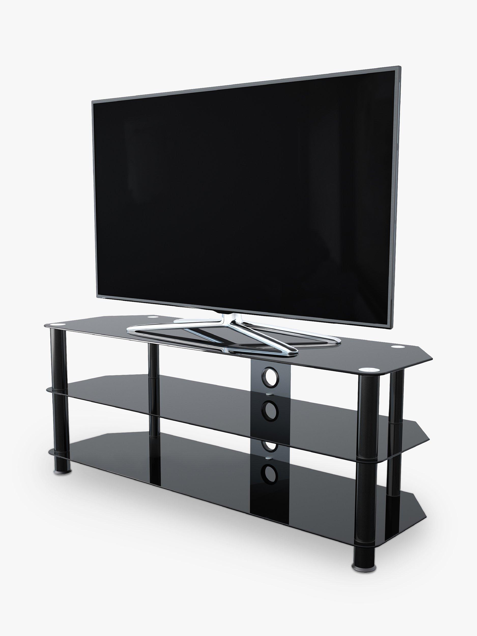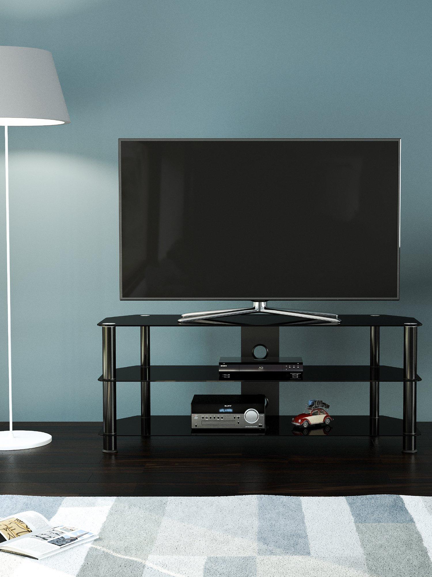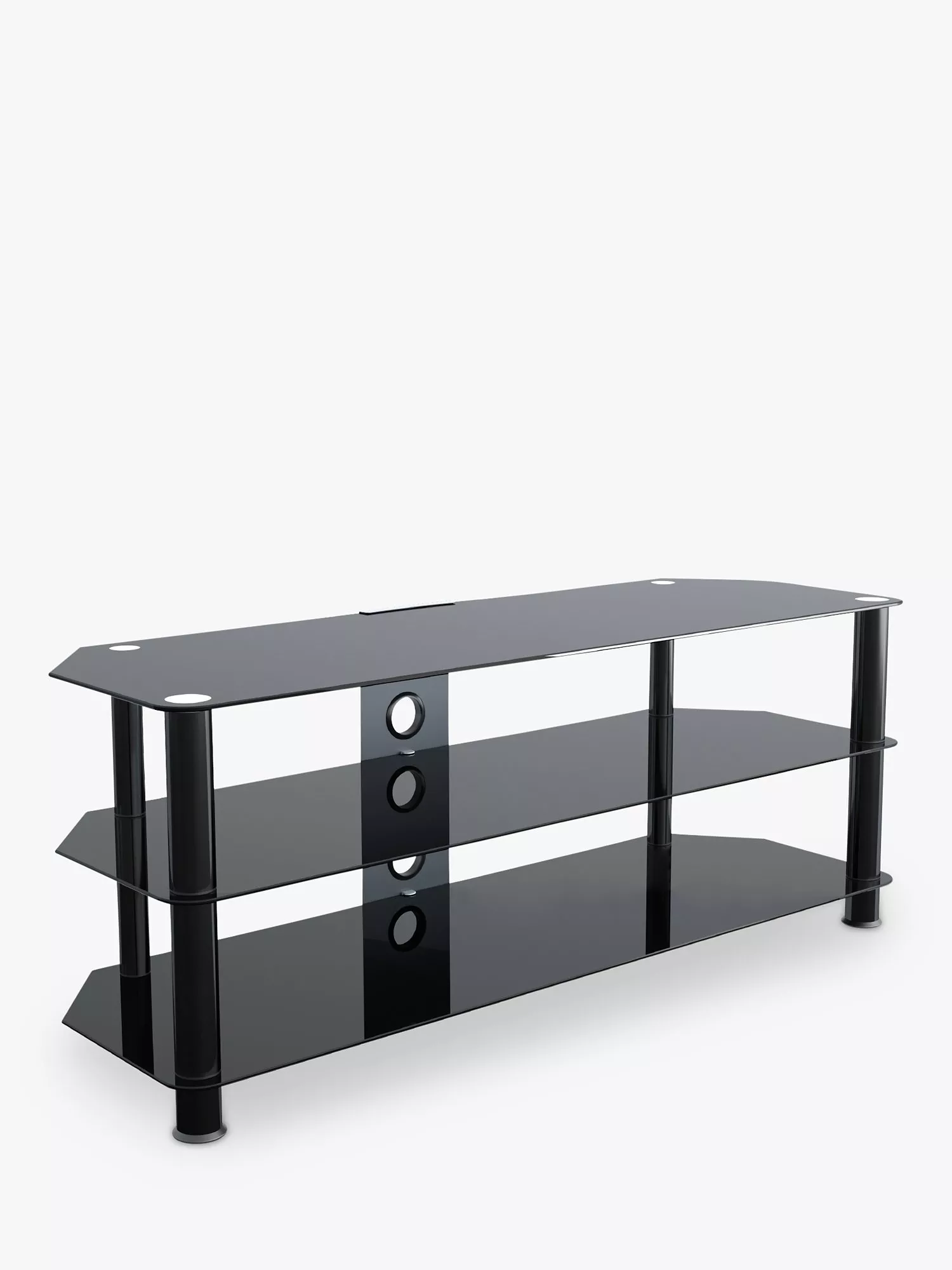Easy to construct, this versatile home entertainment unit has contemporary styling. Clear, tempered safety glass and durable stainless steel legs bring a modernity to any interior, while angled corners save space by making it ideal for the corner of the room. Two lower shelves offer ample room for your media players and AV equipment, and the built-in cable management column at the rear keeps unsightly wires out of view.