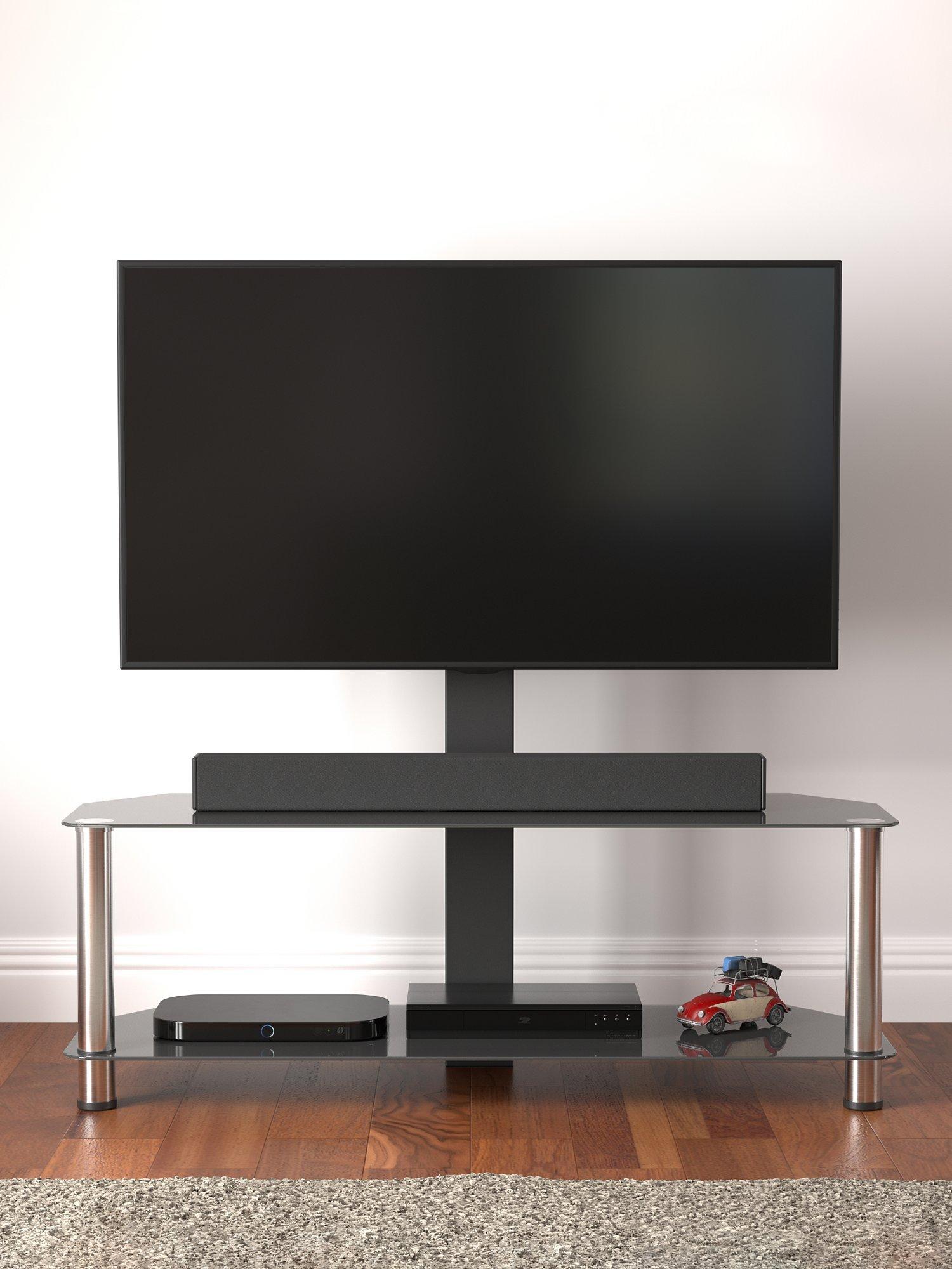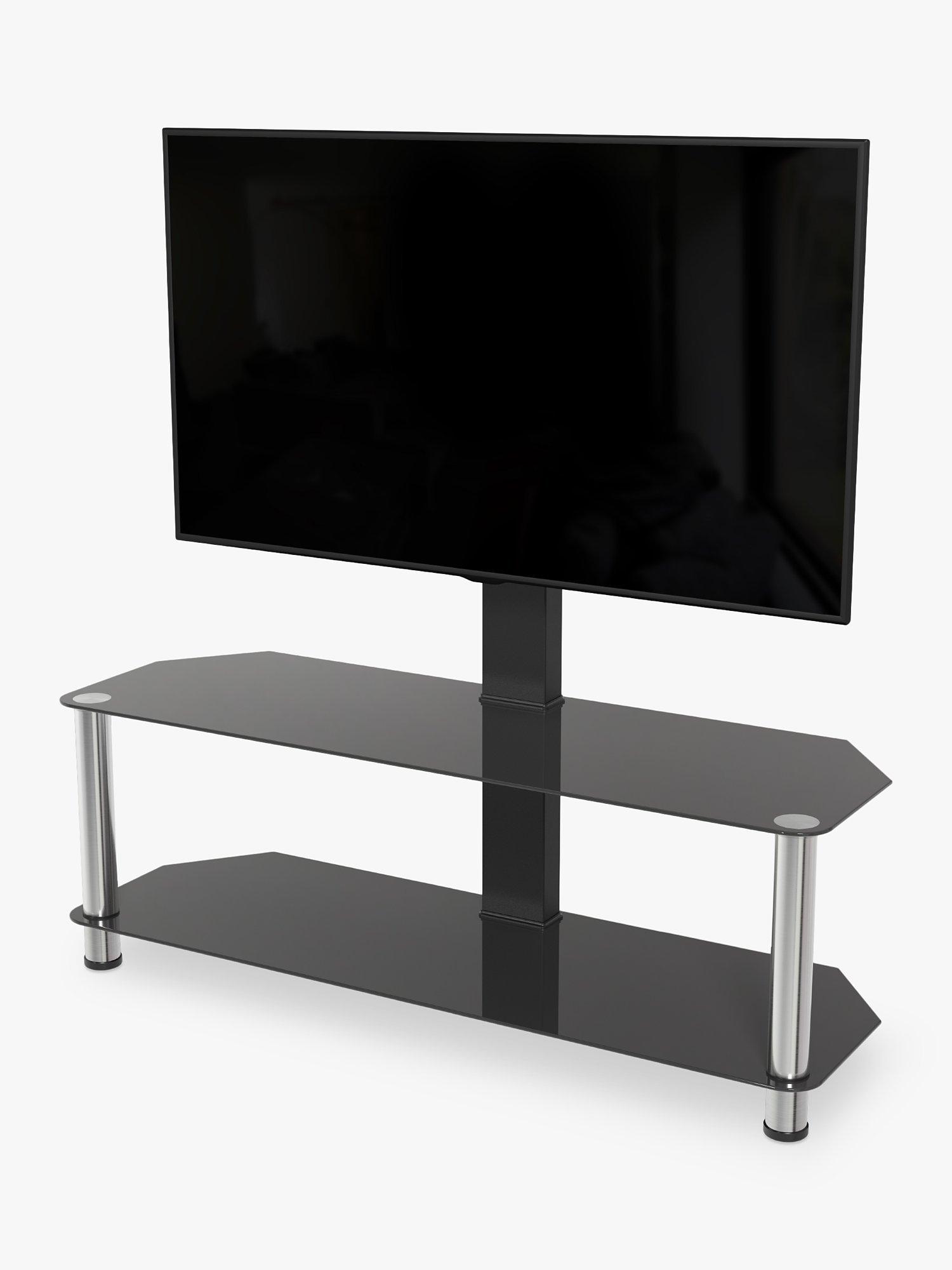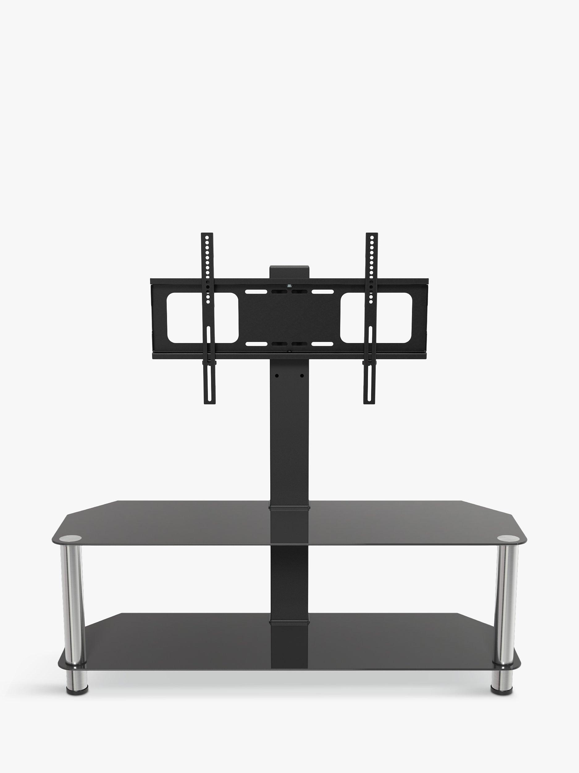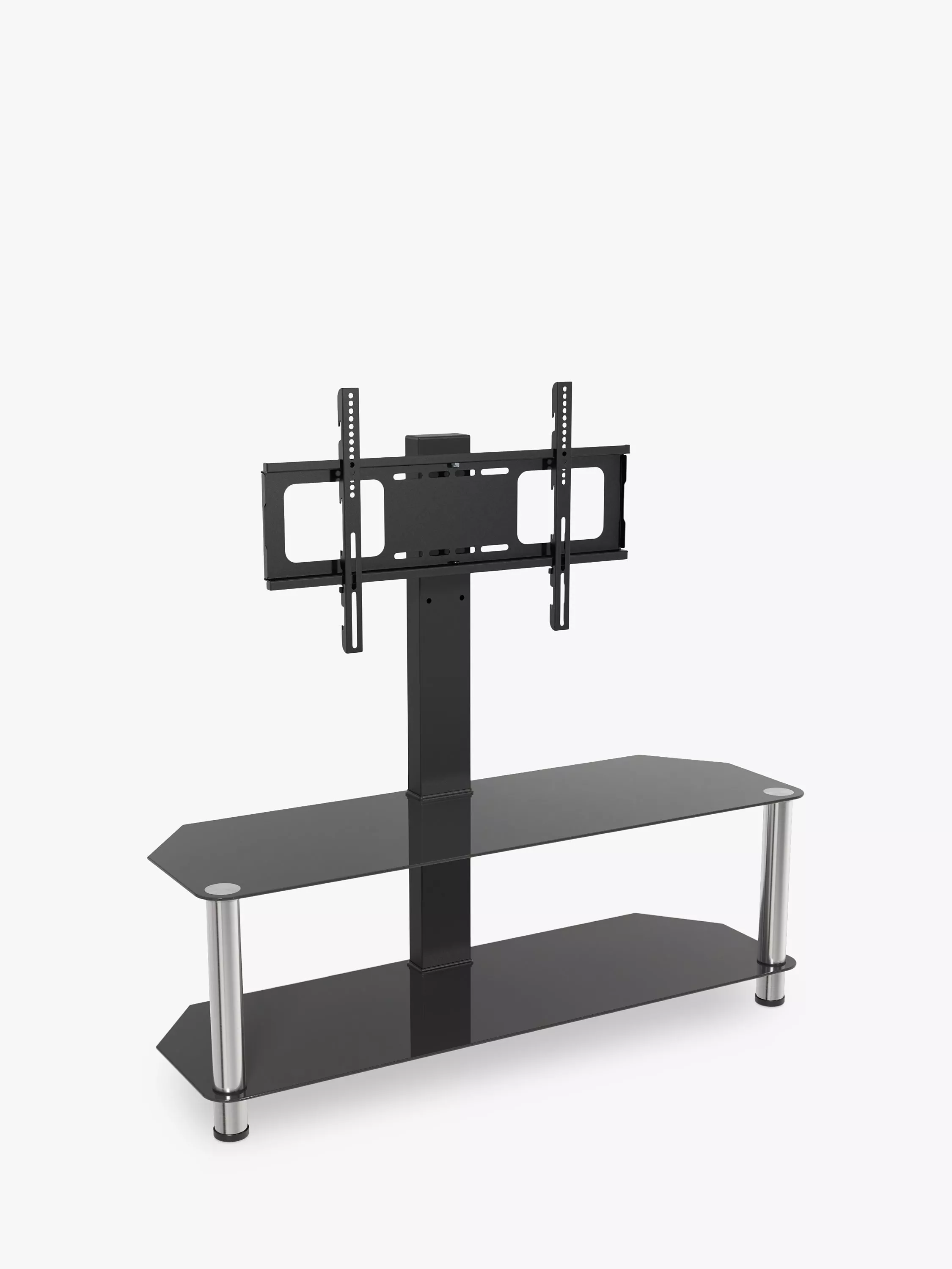 A super easy to construct, contemporary and versatile solution for your home entertainment needs. The black tempered safety glass and durable stainless steel legs modernise any space while the angled corners save valuable space when placed into a corner of your room. Arrange your various AV components on the middle and bottom shelves. Featuring secure AVF mounting technology, you can easily protect your TV from accidental knocks or tip overs. The built in cable management holes in the column of the stand neatly organises your cables out of sight.