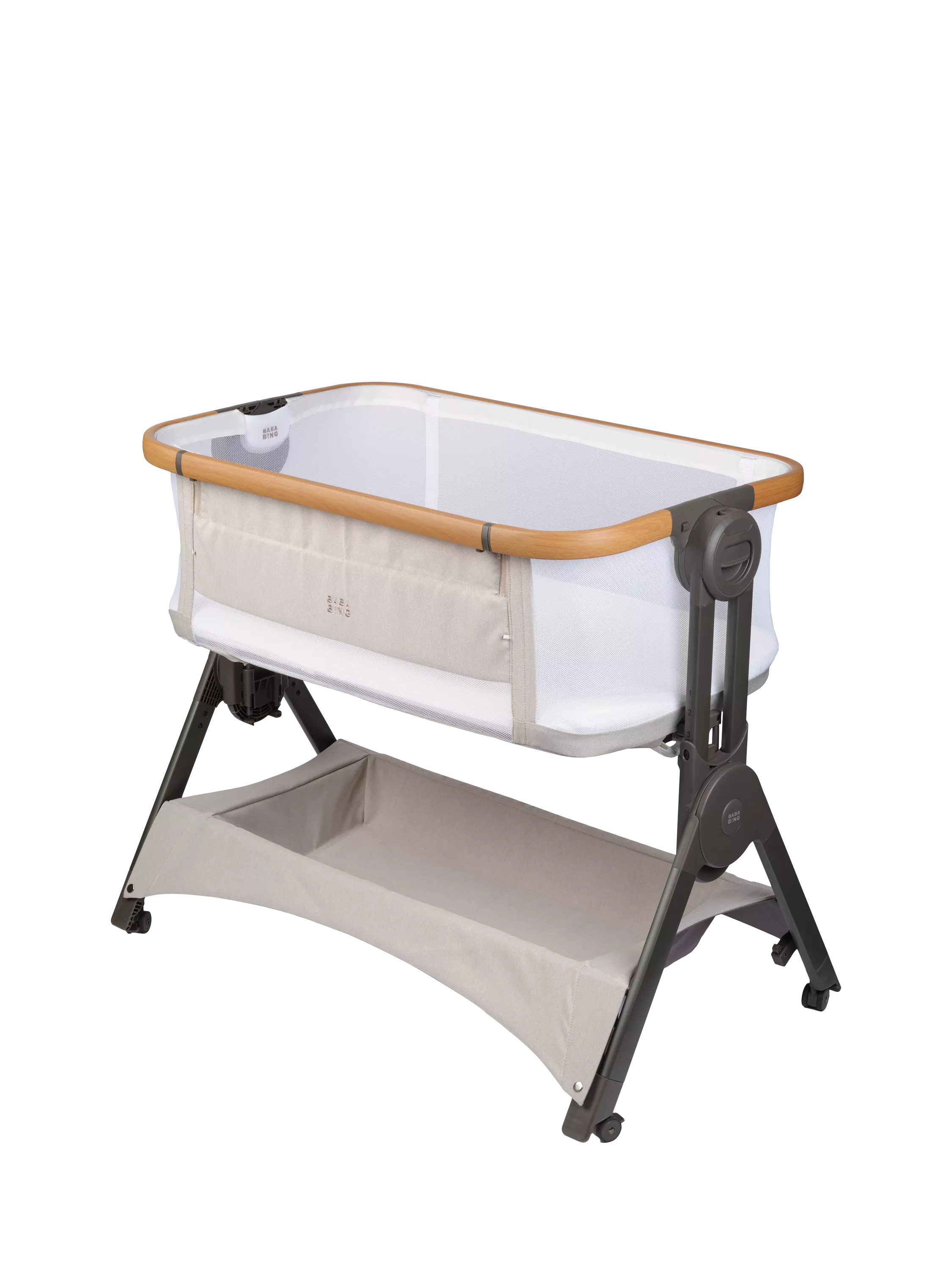 There's no building needed - it's ready to use straight from the box and is then a breeze to move around your home and is perfect for travel thanks to its convenient one-collapse fold and lightweight design. With the Kose Cool lining, your baby stays comfy and cool, ensuring they can sleep soundly. The adjustable legs allow the crib to fit snugly next to almost any bed, making late-night cuddles and feedings effortless. You can also raise one of the sides slightly if your little one is suffering from reflux. Plus, its Scandinavian-inspired design, featuring a warm wood finish and a soft neutral palette, adds a stylish touch to your home.
