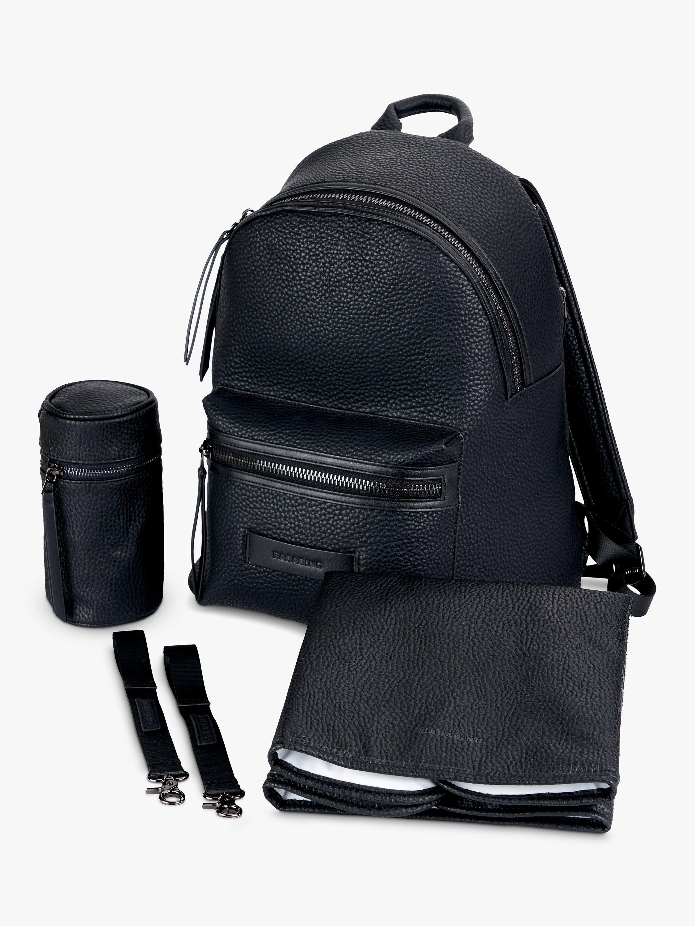 The unisex design features a sophisticated, classic backpack shape, allowing easy access to changing essentials when you need them most. Refreshingly lightweight, it offers the ultimate in hands-free options, with adjustable padded backpack straps for the perfect fit and a super-size changing mat, quality, thermal bottle holder and matching stroller clips included. There is also a very clever pocket at the bottom of the backpack to store away wet or dirty items ensuring the main compartment remains clean and dry. Super fashionable but above all super functional!
