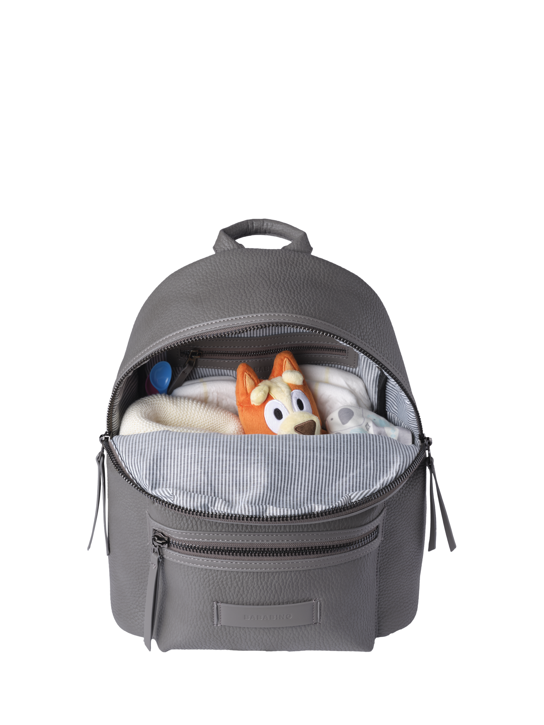 - 1 zipped front pocket, 1 zipped back pocket for wet and dirty items, 4 internal pockets for wipes and nappies