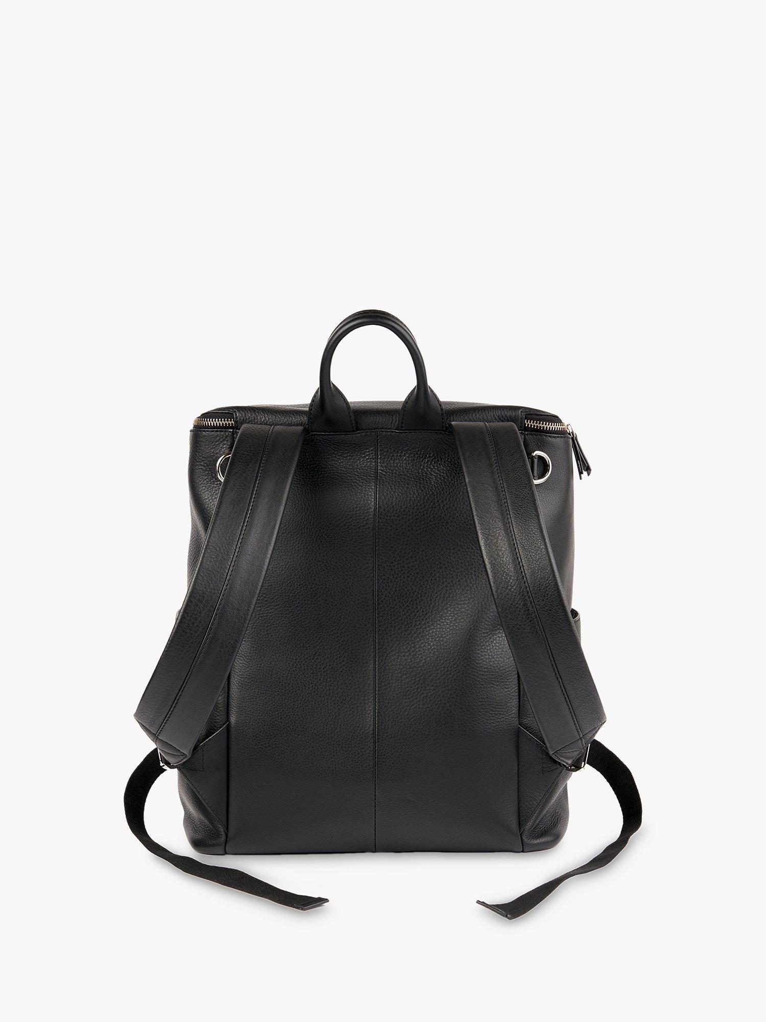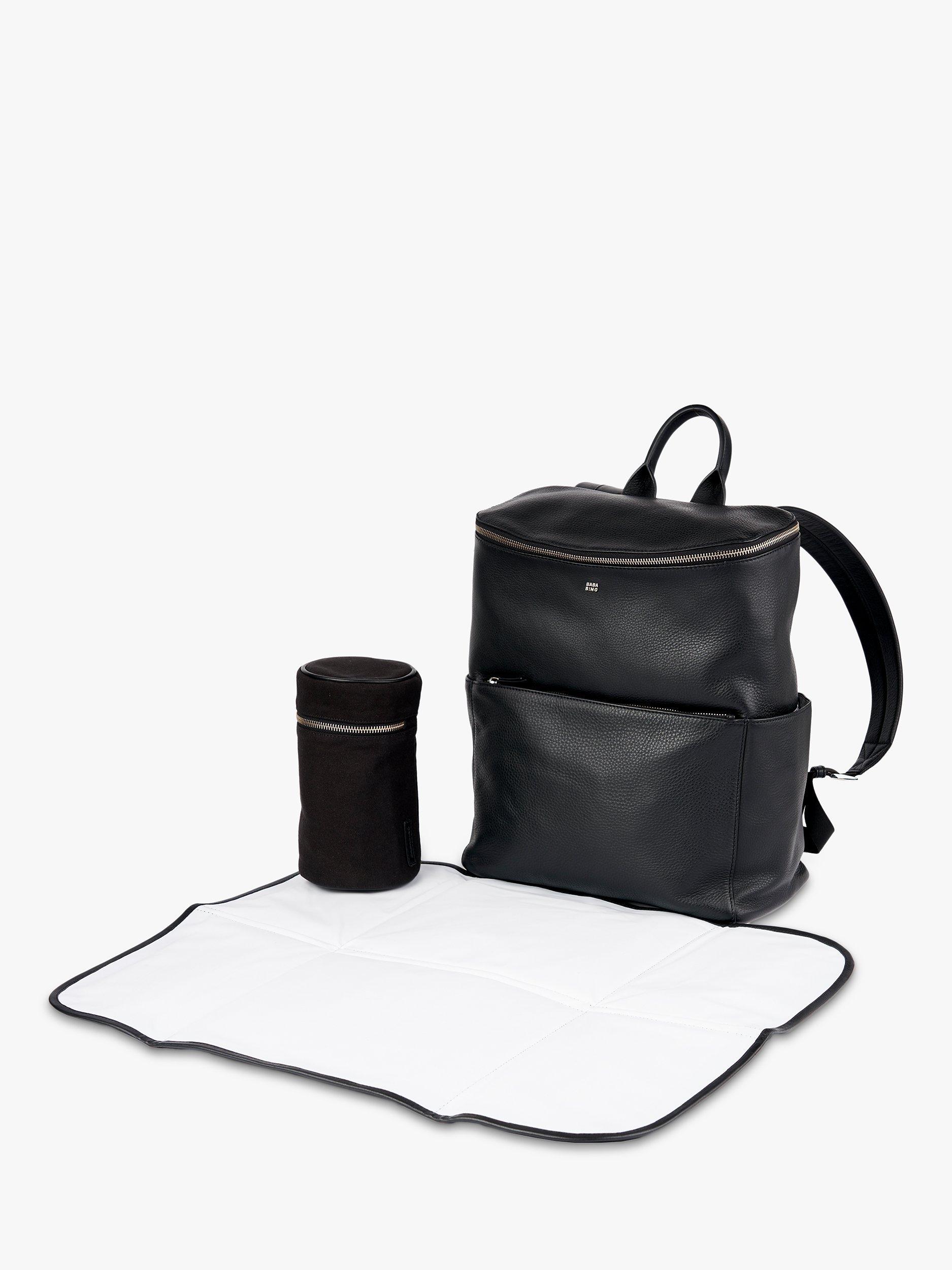 Crafted with clean lines, luxurious leather, and sleek silver-accented hardware, the Santo backpack provides the function of a changing bag while effortlessly exuding style. Its versatile design features a sophisticated square-shaped zip opening, allowing easy access to changing essentials when you need them most.